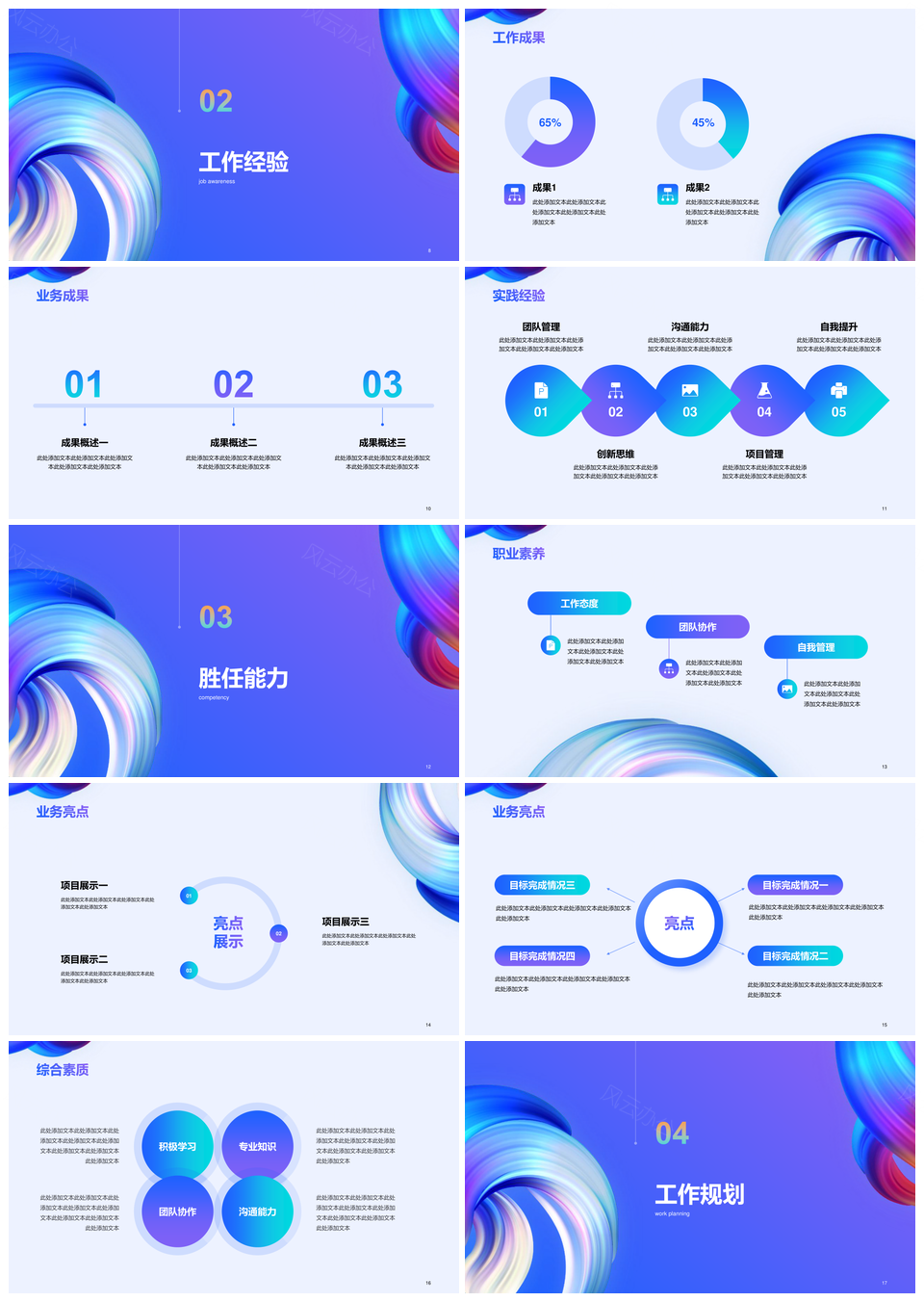 这是一张蓝紫渐变3D流体创意酷炫教育竞聘述职PPT模板,包含蓝紫、渐变、3D、流体、创意、酷炫、教育、竞聘、述职等主题内容,也可用作蓝紫渐变3D流体、渐变3D流体创意、3D流体创意酷炫、流体创意酷炫教育、创意酷炫教育竞聘、蓝紫渐变3D、渐变3D流体、3D流体创意、流体创意酷炫、创意酷炫教育、蓝紫渐变、渐变3D、3D流体、流体创意、创意酷炫等PPT场景使用。 风云办公提供的蓝紫渐变3D流体创意酷炫教育竞聘述职PPT模板,下载格式为pptx,一共20页,作品中文字及图均可以修改和编辑,图片更改请在作品中右键图片并更换,文字修改请直接点击文字进行修改。