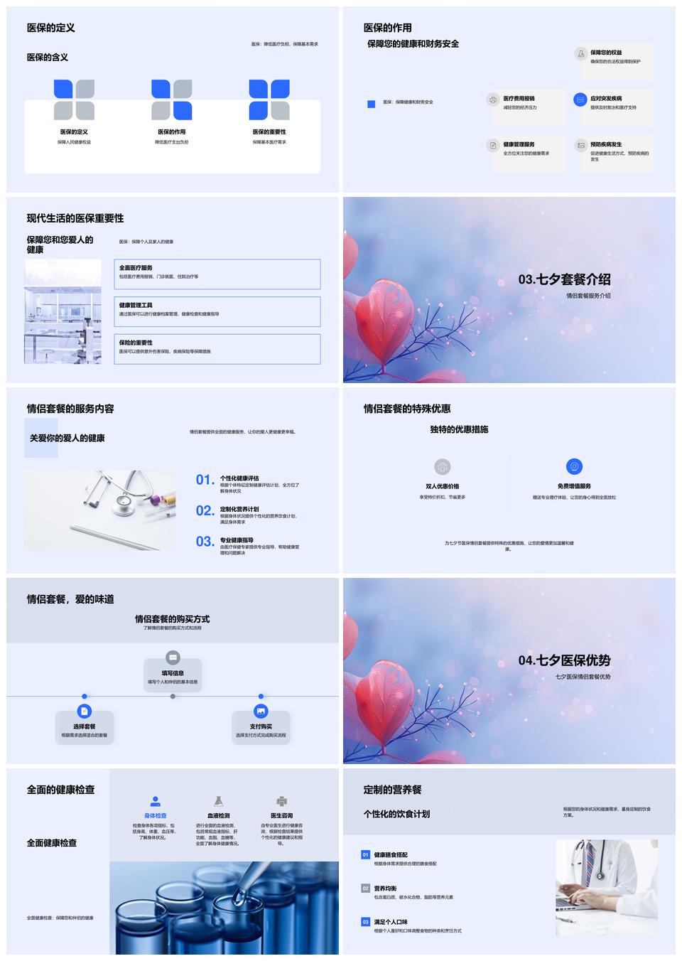 七夕医保情侣套餐优惠购健康保障全面检查PPT模板推荐