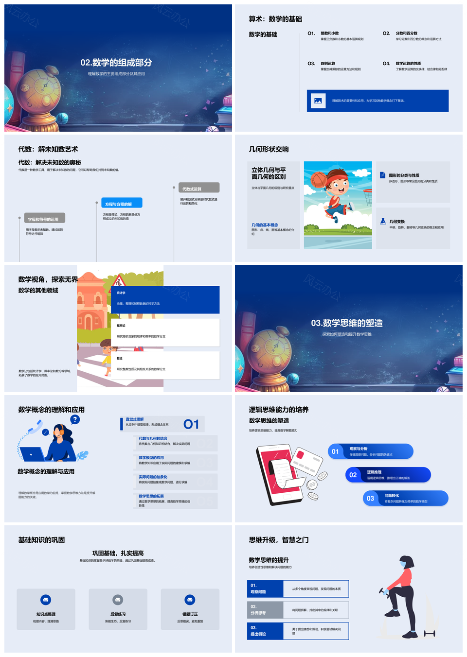 初中数学解题技巧算术代数几何逻辑思维PPT模板推荐