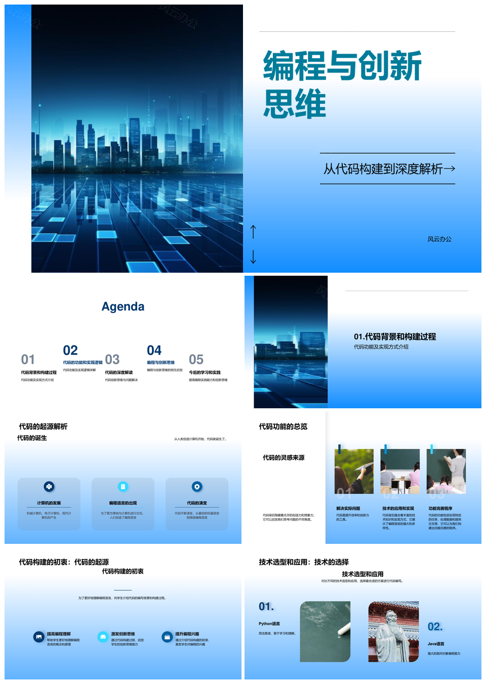风云办公提供的编程创新思维代码构建深度解析PPT模板,下载格式为pptx,一共28页,作品中文字及图均可以修改和编辑,图片更改请在作品中右键图片并更换,文字修改请直接点击文字进行修改。