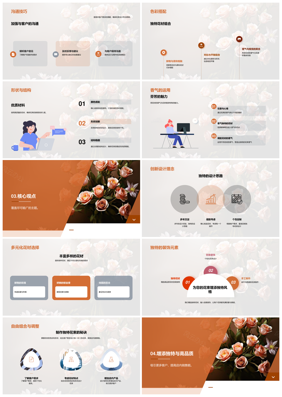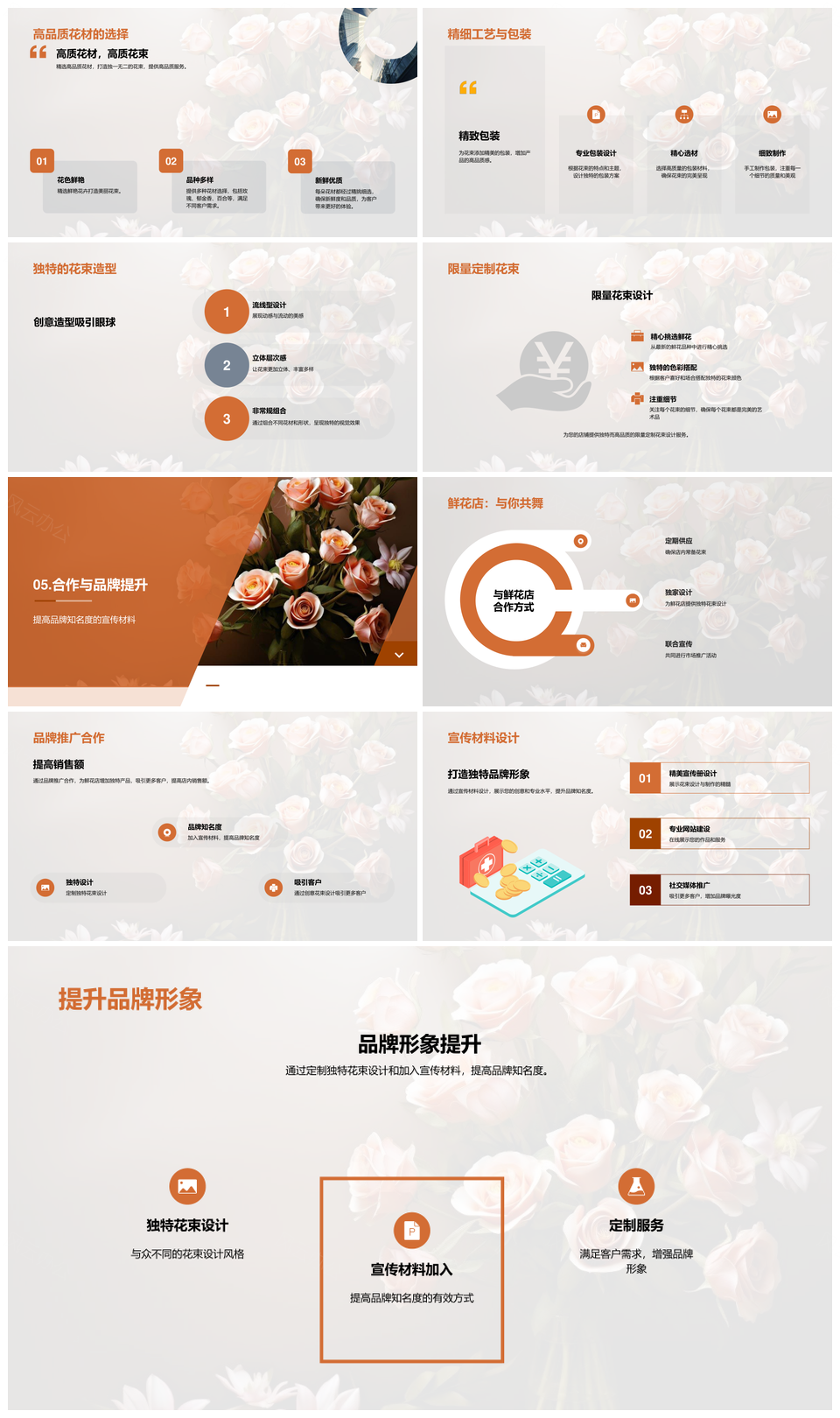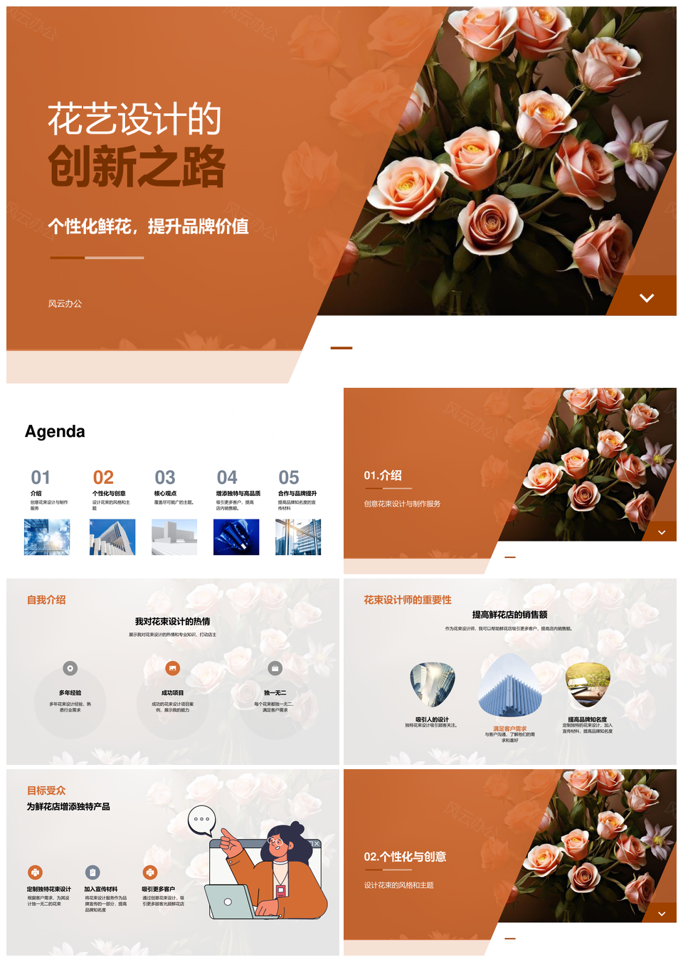 专业花束设计师创意花艺与企业宣传创新PPT模板推荐