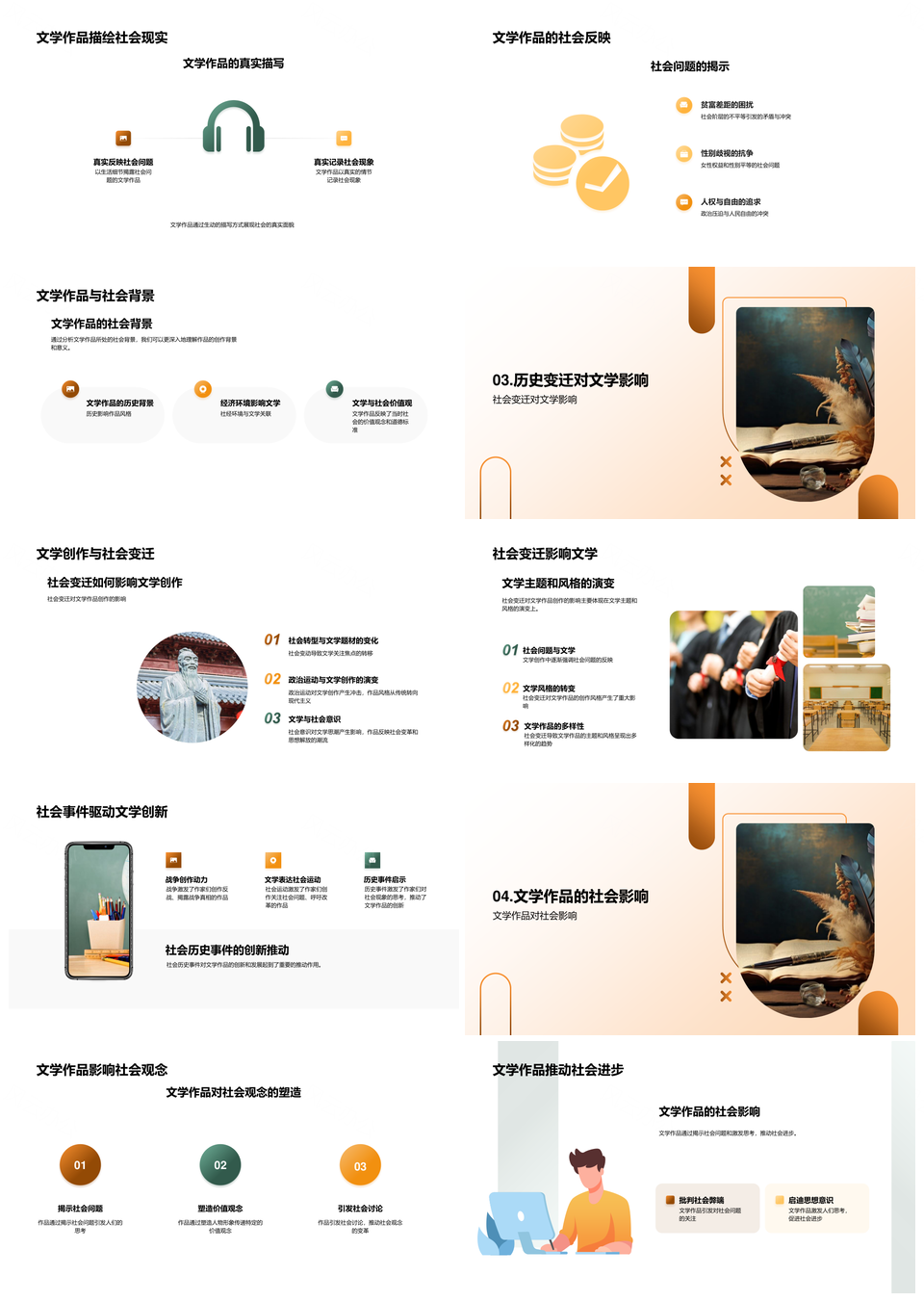 这是一张文学作品社会历史变迁互映PPT模板,包含文学作品、社会历史、变迁、互映等主题内容,也可用作文学作品社会历史变迁互映、文学作品社会历史变迁、社会历史变迁互映、文学作品社会历史、社会历史变迁、历史变迁互映、文学作品历史变迁、社会历史互映、社会历史、历史变迁、变迁互映、文学作品社会、文学作品历史、社会变迁、文学作品互映等PPT场景使用。