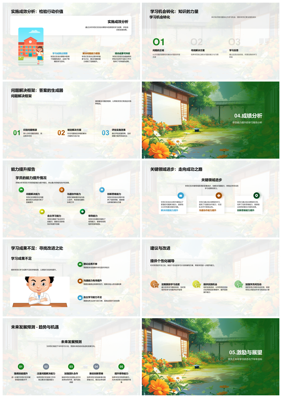 这是一张半年培训学员挑战目标达成案例成果总结PPT模板,包含半年、培训、学员、挑战、目标、达成、案例、成果、总结等主题内容,也可用作半年培训学员挑战目标达成、培训学员挑战目标达成案例、学员挑战目标达成案例成果、挑战目标达成案例成果总结、半年培训学员挑战目标、半年培训学员达成案例、培训学员目标达成案例成果、学员目标达成案例成果总结、半年挑战目标达成案例、培训学员挑战目标达成成果、学员挑战达成案例成果总结、半年培训挑战目标案例、培训目标达成案例总结、学员案例成果总结、半年培训成果总结等PPT场景使用。 风云办公提供的半年培训学员挑战目标达成案例成果总结PPT模板,下载格式为pptx,一共33页,作品中文字及图均可以修改和编辑,图片更改请在作品中右键图片并更换,文字修改请直接点击文字进行修改。