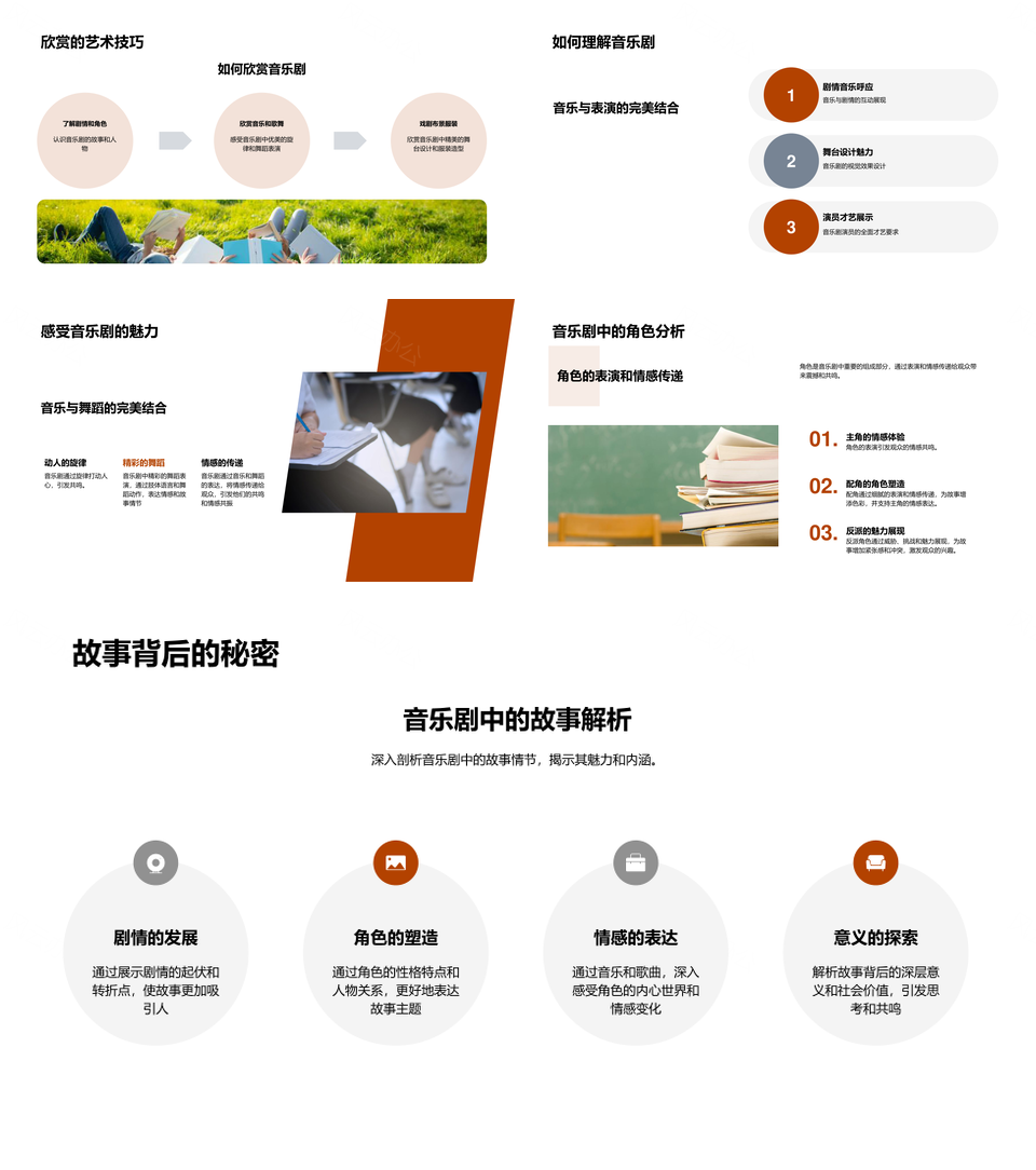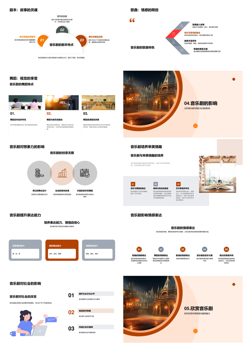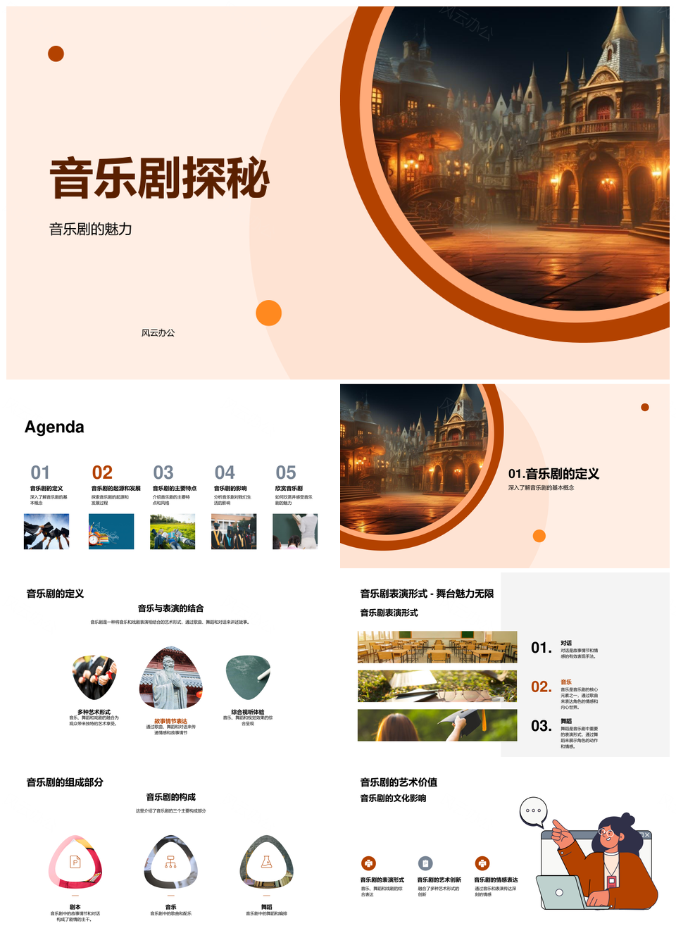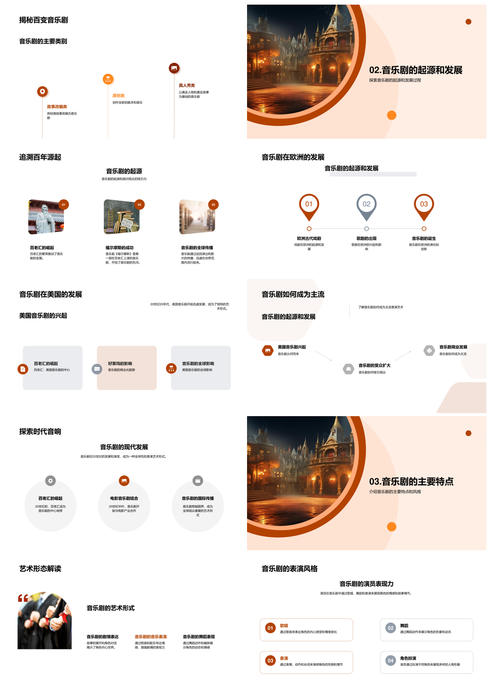 这是一张音乐剧起源美国百老汇主流艺术风格想象PPT模板,包含音乐剧、起源、美国、百老汇、主流、艺术风格、想象等主题内容,也可用作美国百老汇主流艺术、百老汇主流艺术风格、主流艺术风格想象、音乐剧起源美国百老汇、音乐剧美国百老汇艺术、音乐剧艺术风格想象、美国百老汇主流、百老汇主流艺术、主流艺术风格、艺术风格想象、音乐剧起源美国、美国百老汇音乐剧、音乐剧主流艺术、音乐剧艺术风格、美国百老汇艺术风格等PPT场景使用。 风云办公提供的音乐剧起源美国百老汇主流艺术风格想象PPT模板,下载格式为pptx,一共33页,作品中文字及图均可以修改和编辑,图片更改请在作品中右键图片并更换,文字修改请直接点击文字进行修改。
