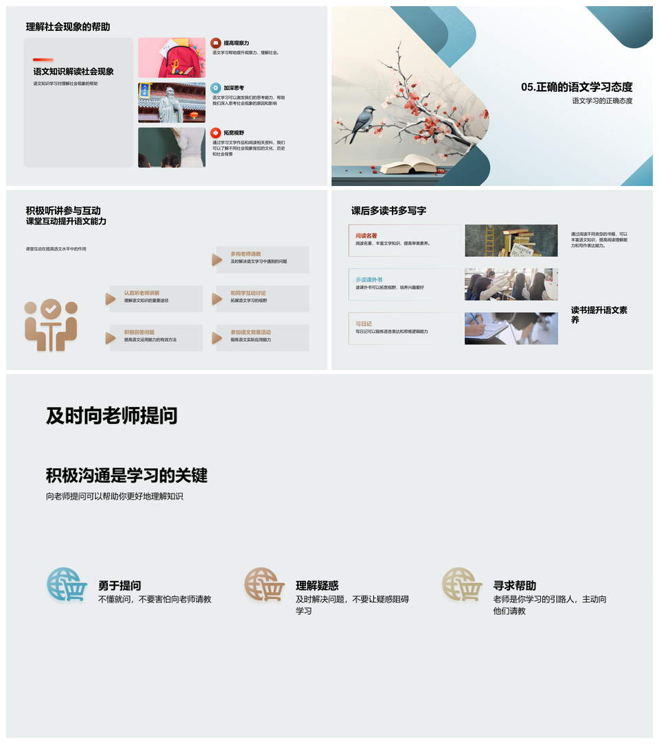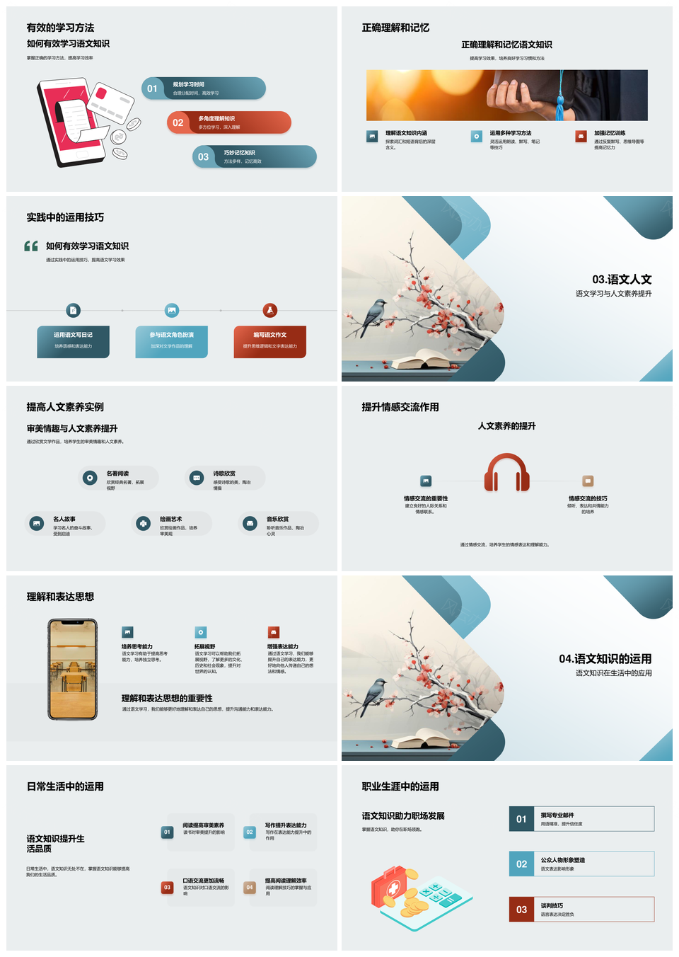 这是一张语文学习重要开书启智PPT模板,包含语文学习、重要、开书启智等主题内容,也可用作语文学习重要开书、学习重要开书启智、语文学习重要、语文学习启智、学习重要启智、学习开书启智、重要开书启智、语文学习、学习重要、重要开书、开书启智、语文重要、语文启智、学习启智、重要启智等PPT场景使用。 风云办公提供的语文学习重要开书启智PPT模板,下载格式为pptx,一共23页,作品中文字及图均可以修改和编辑,图片更改请在作品中右键图片并更换,文字修改请直接点击文字进行修改。