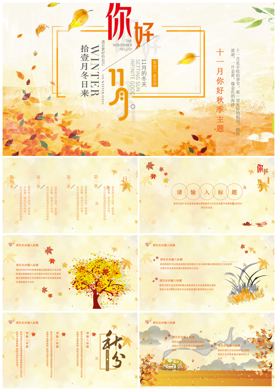 十一月你好秋季主题PPT模板