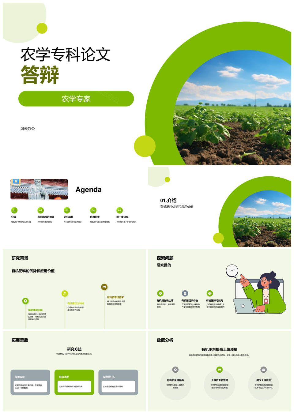 农学专科有机肥料对土壤质量影响研究答辩PPT模板推荐