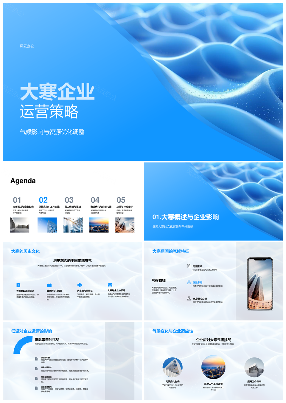 大寒企业气候应对资源效率健康管理策略PPT模板推荐