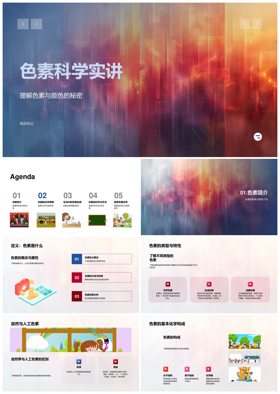 风云办公提供的色素色彩化学光线原理化妆品艺术应用PPT模板,下载格式为pptx,一共28页,作品中文字及图均可以修改和编辑,图片更改请在作品中右键图片并更换,文字修改请直接点击文字进行修改。
