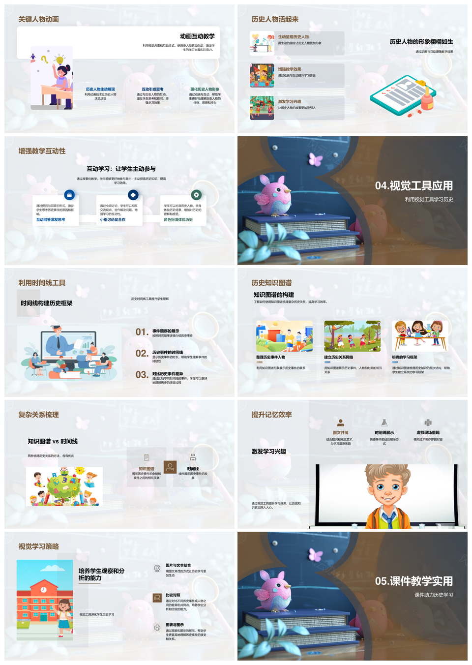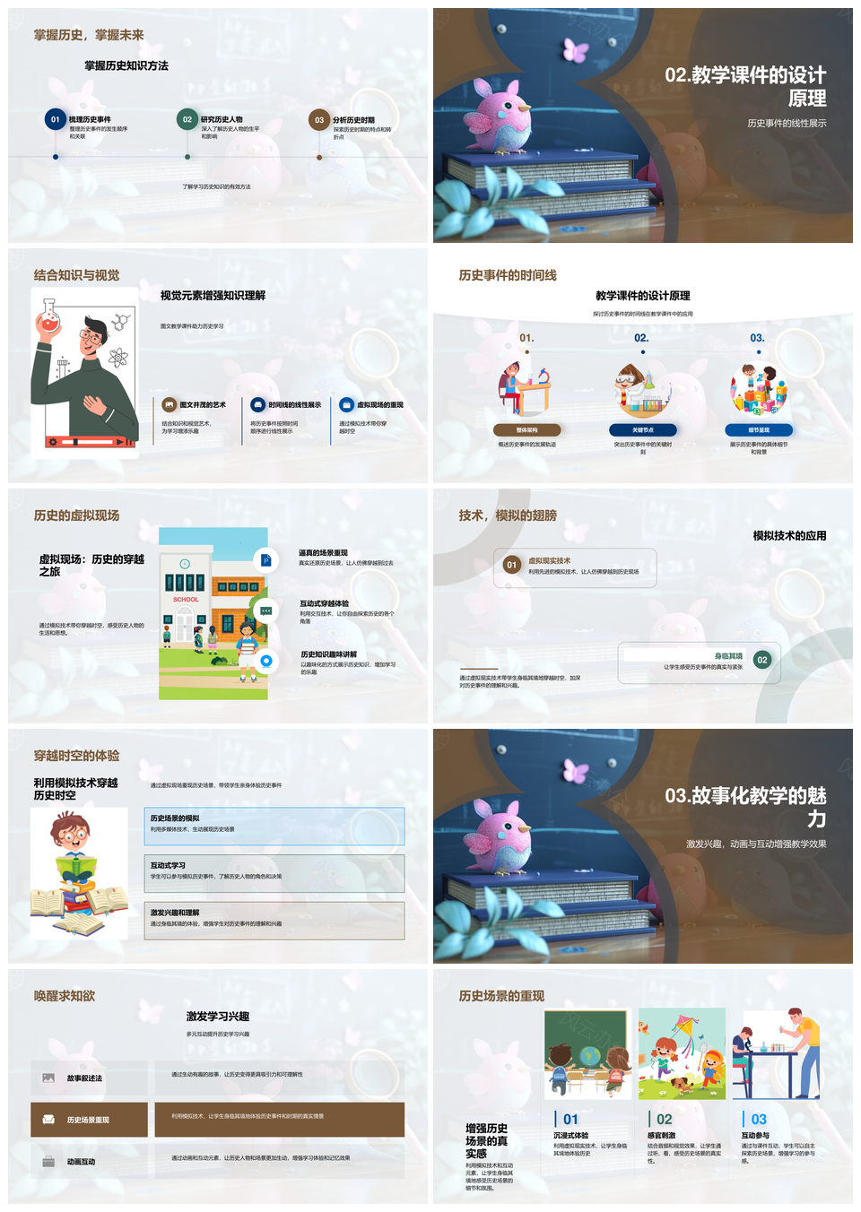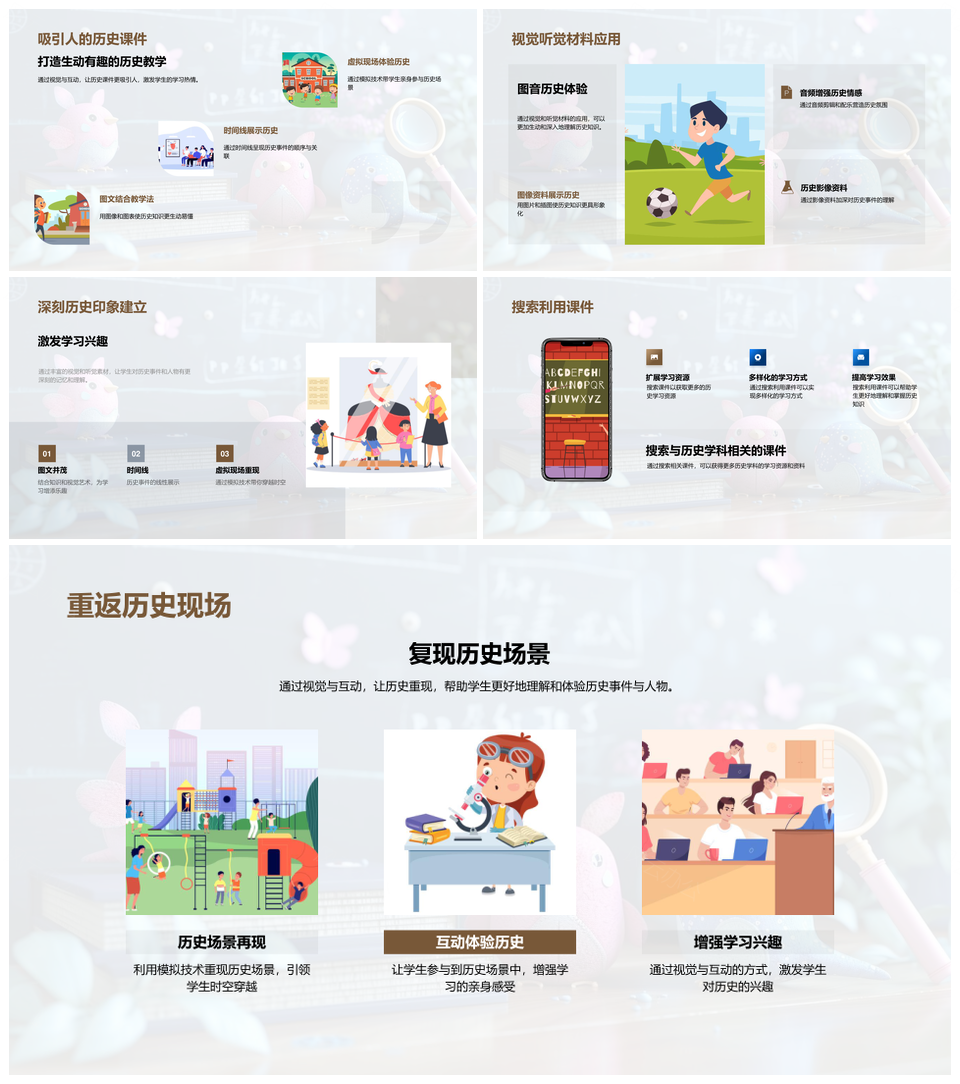 历史学习策略课件模拟技术视觉时间线知识图谱互动PPT模板推荐