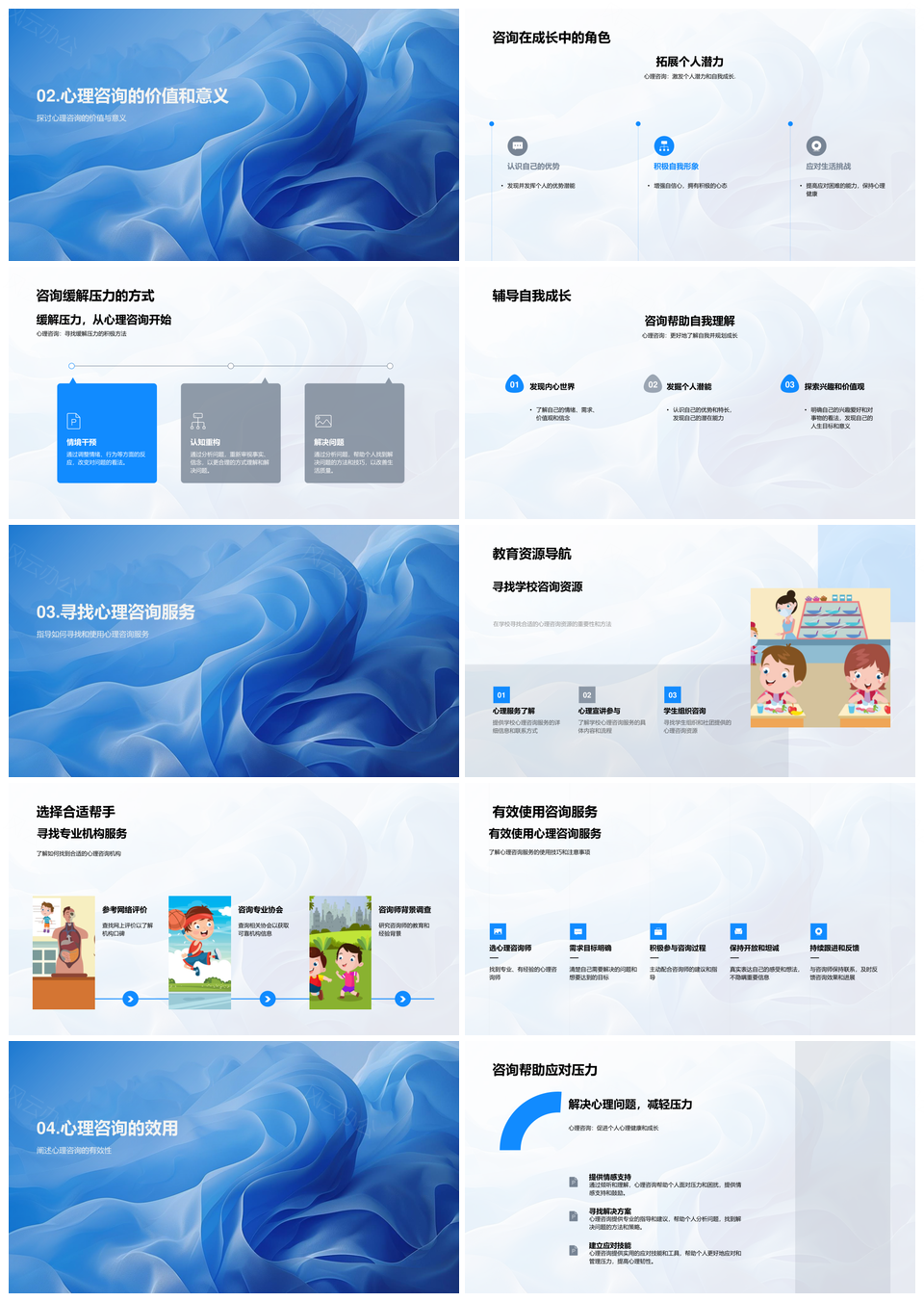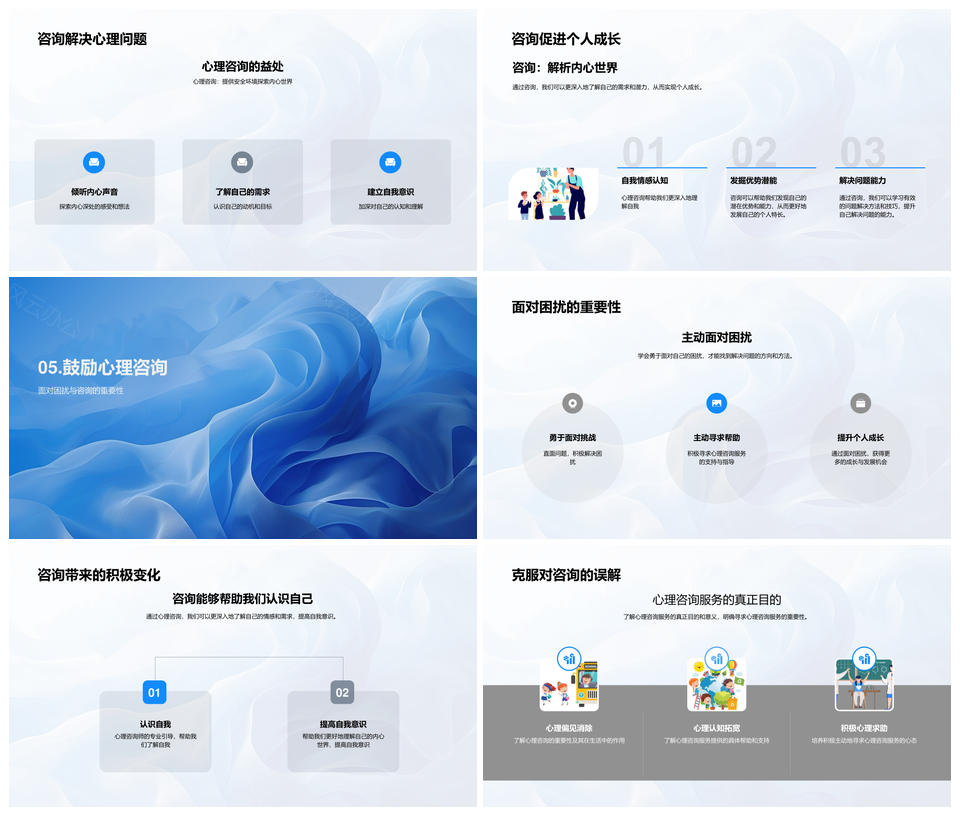 风云办公提供的心理咨询助力个人成长与压力缓解PPT模板,下载格式为pptx,一共24页,作品中文字及图均可以修改和编辑,图片更改请在作品中右键图片并更换,文字修改请直接点击文字进行修改。