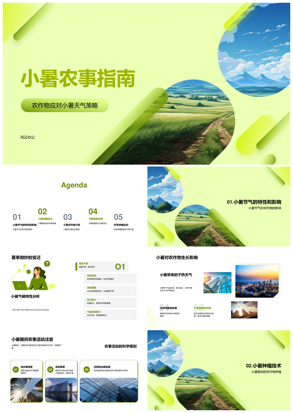风云办公提供的小暑农作物水稻玉米播灌防病虫指南PPT模板,下载格式为pptx,一共23页,作品中文字及图均可以修改和编辑,图片更改请在作品中右键图片并更换,文字修改请直接点击文字进行修改。