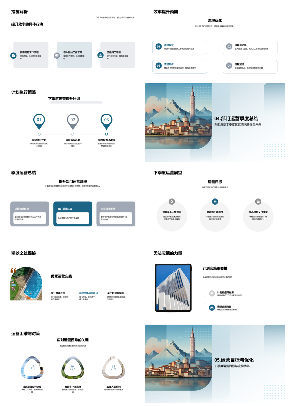 风云办公提供的部门季度运营成效与效率提升策略PPT模板,下载格式为pptx,一共33页,作品中文字及图均可以修改和编辑,图片更改请在作品中右键图片并更换,文字修改请直接点击文字进行修改。