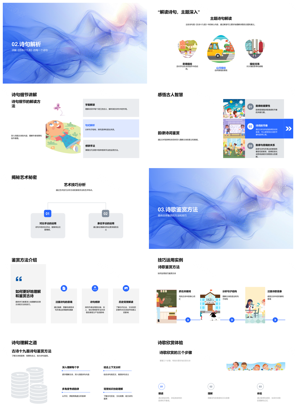风云办公提供的古诗十九首教学鉴赏背景解析方法PPT模板,下载格式为pptx,一共28页,作品中文字及图均可以修改和编辑,图片更改请在作品中右键图片并更换,文字修改请直接点击文字进行修改。