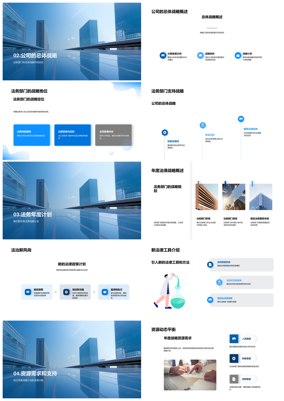法务战略规划职责年度计划资源支持新政策工具PPT模板推荐