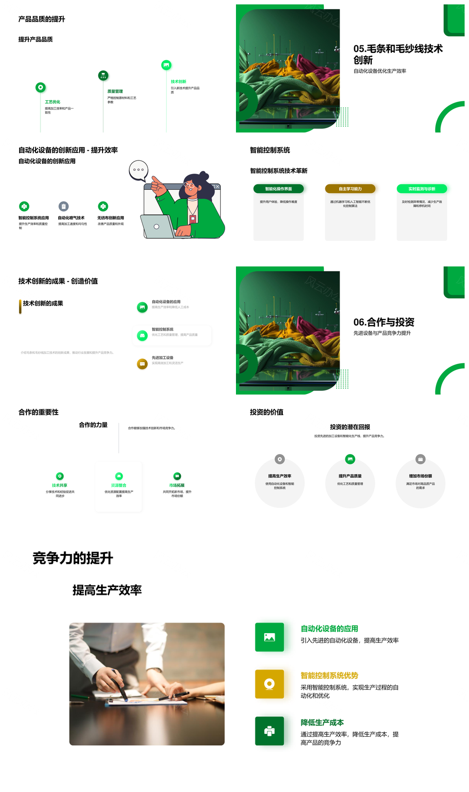 风云办公提供的智能纺织毛纱线加工自动化设备技术PPT模板,下载格式为pptx,一共27页,作品中文字及图均可以修改和编辑,图片更改请在作品中右键图片并更换,文字修改请直接点击文字进行修改。