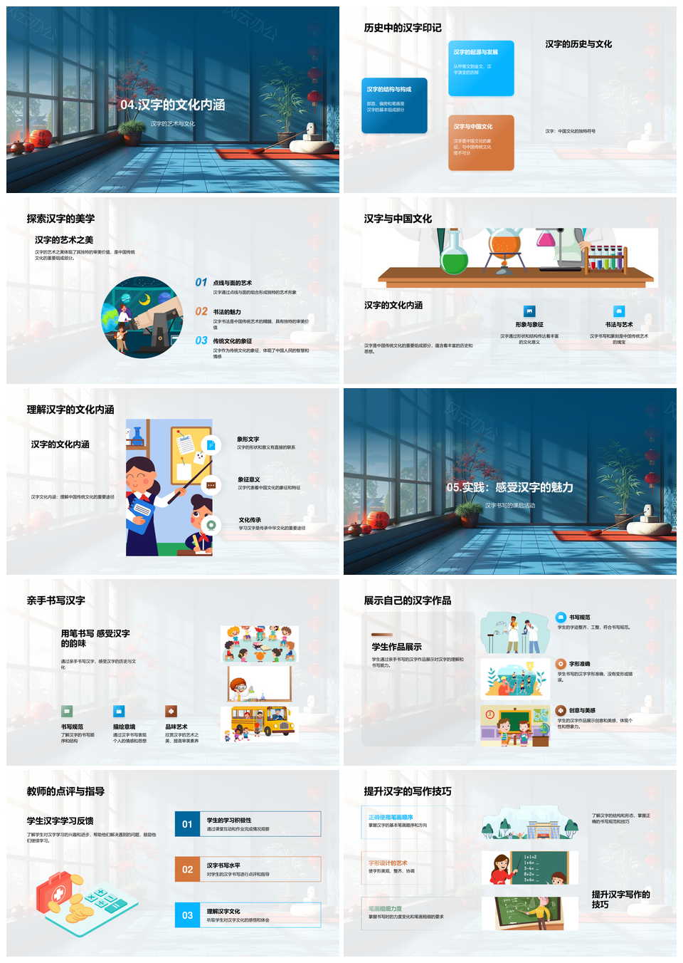 汉字演变史从甲骨文金文到现代教学PPT模板