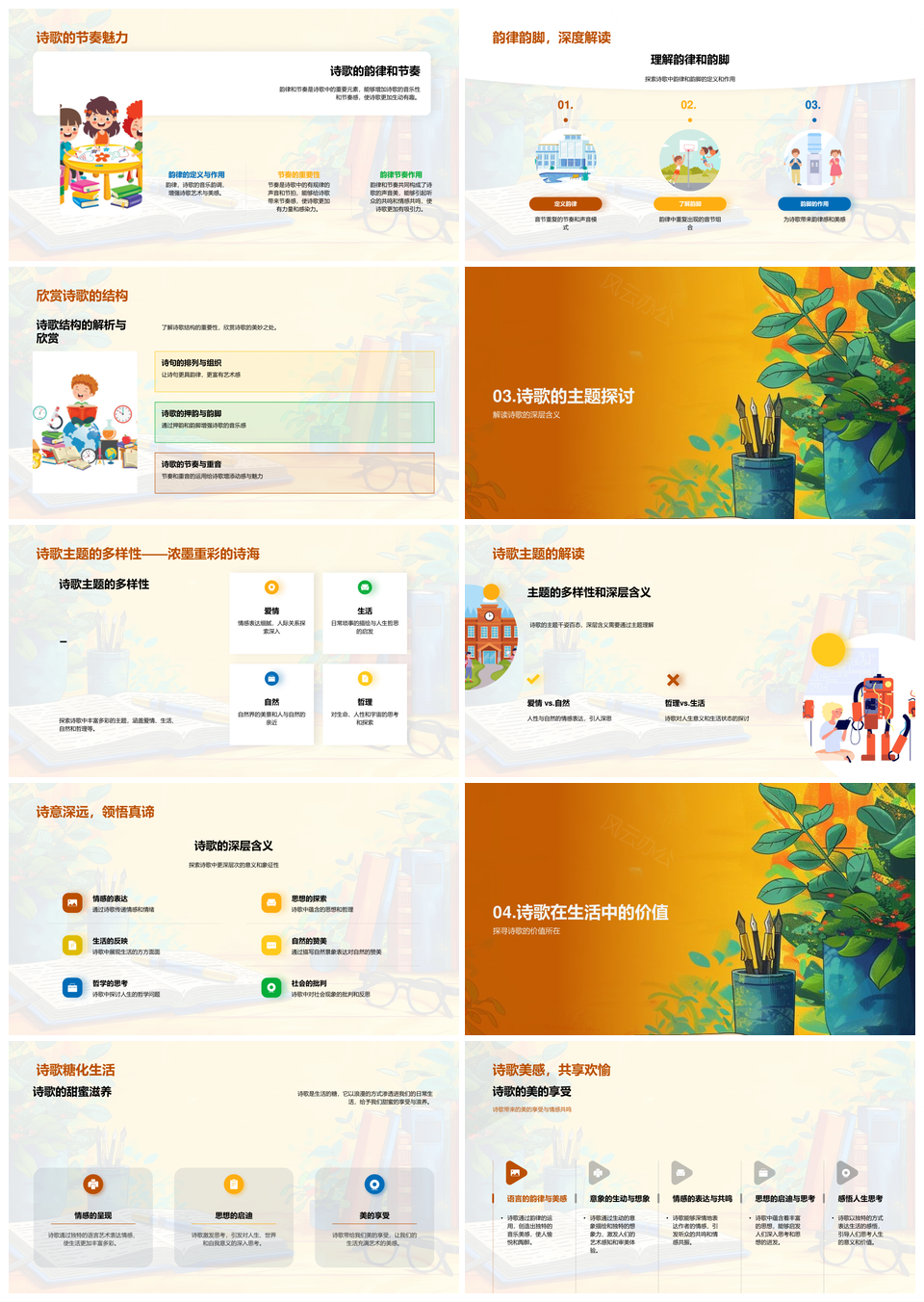 诗歌艺术结构主题解析创作赏析节奏定义PPT模板推荐