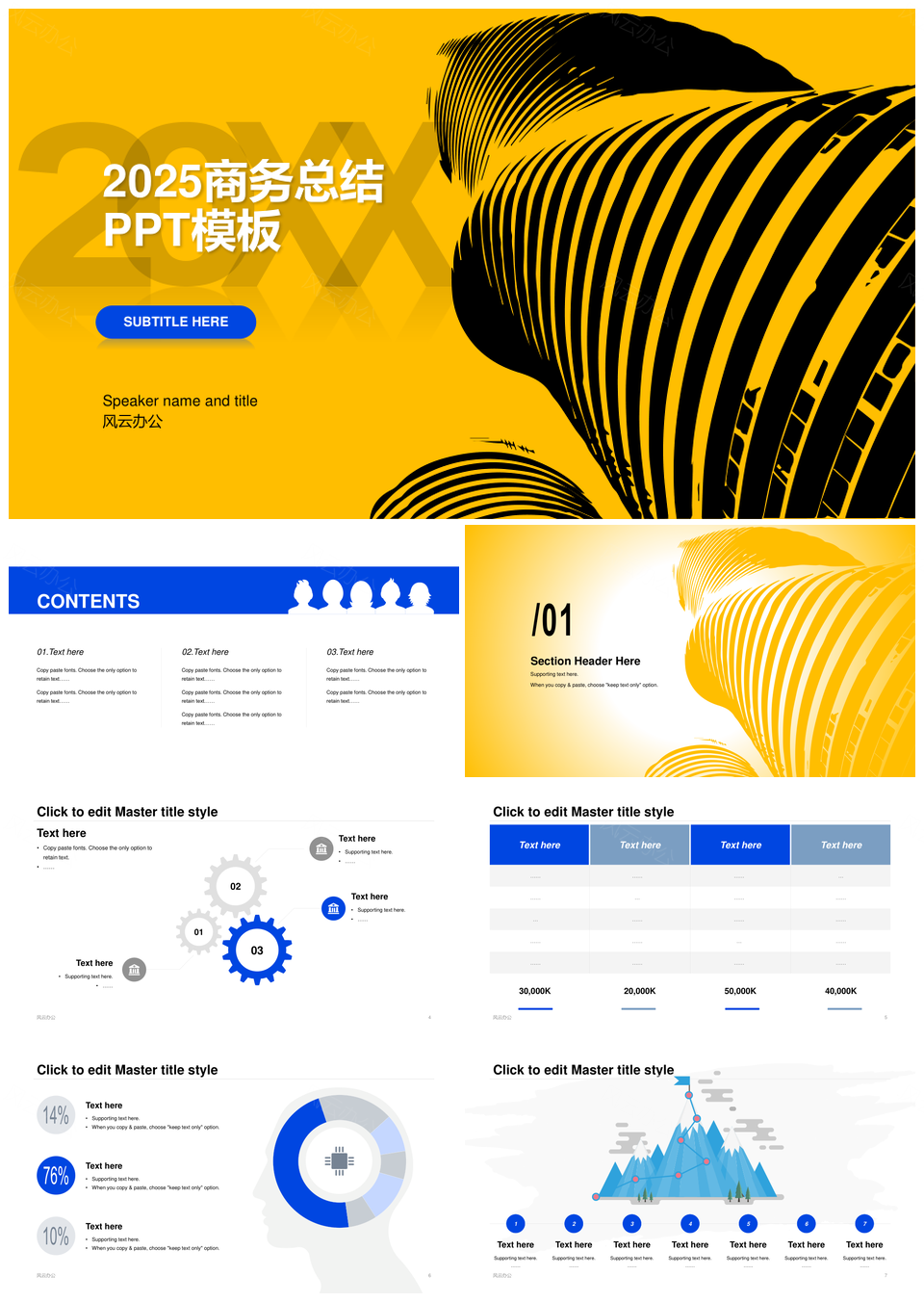 风云办公提供的2025建筑商务黄城市年终总结PPT课件,下载格式为pptx,一共32页,作品中文字及图均可以修改和编辑,图片更改请在作品中右键图片并更换,文字修改请直接点击文字进行修改。