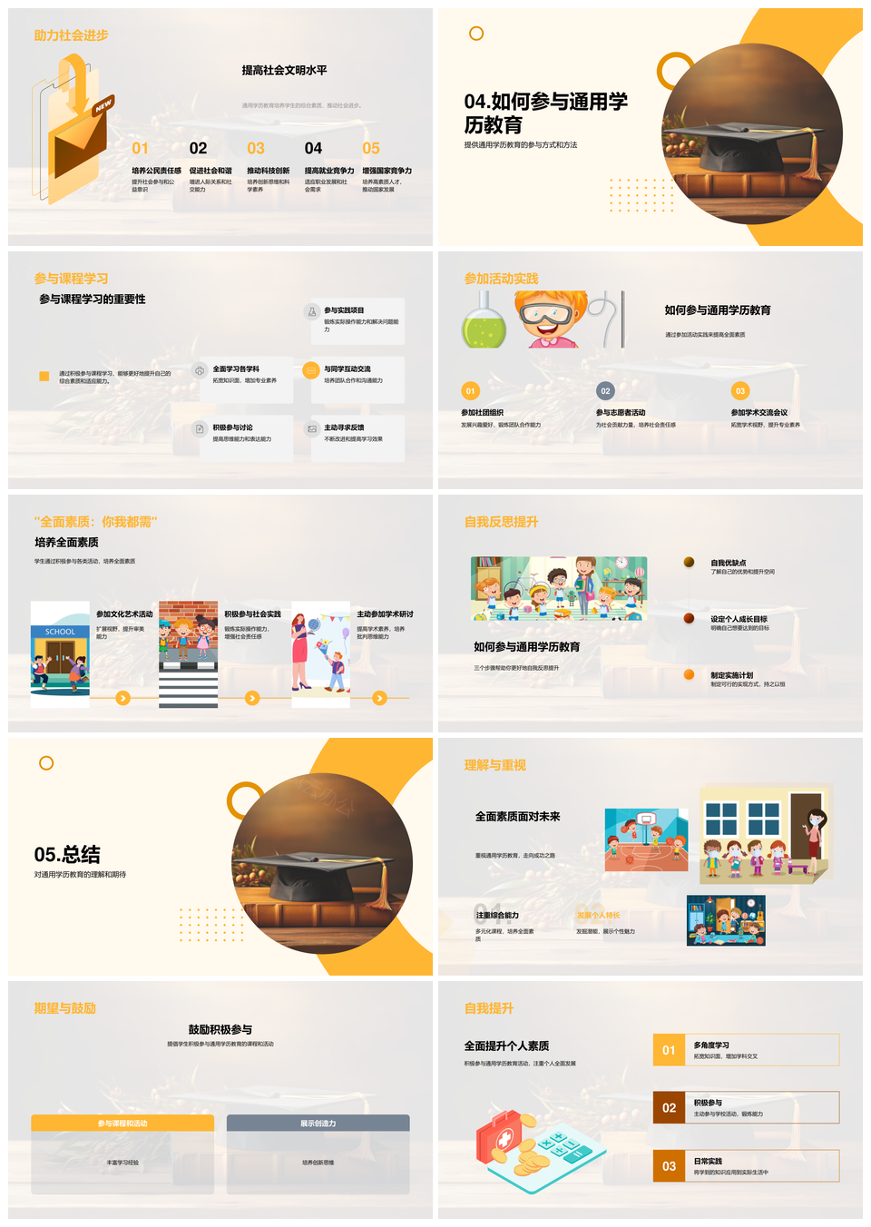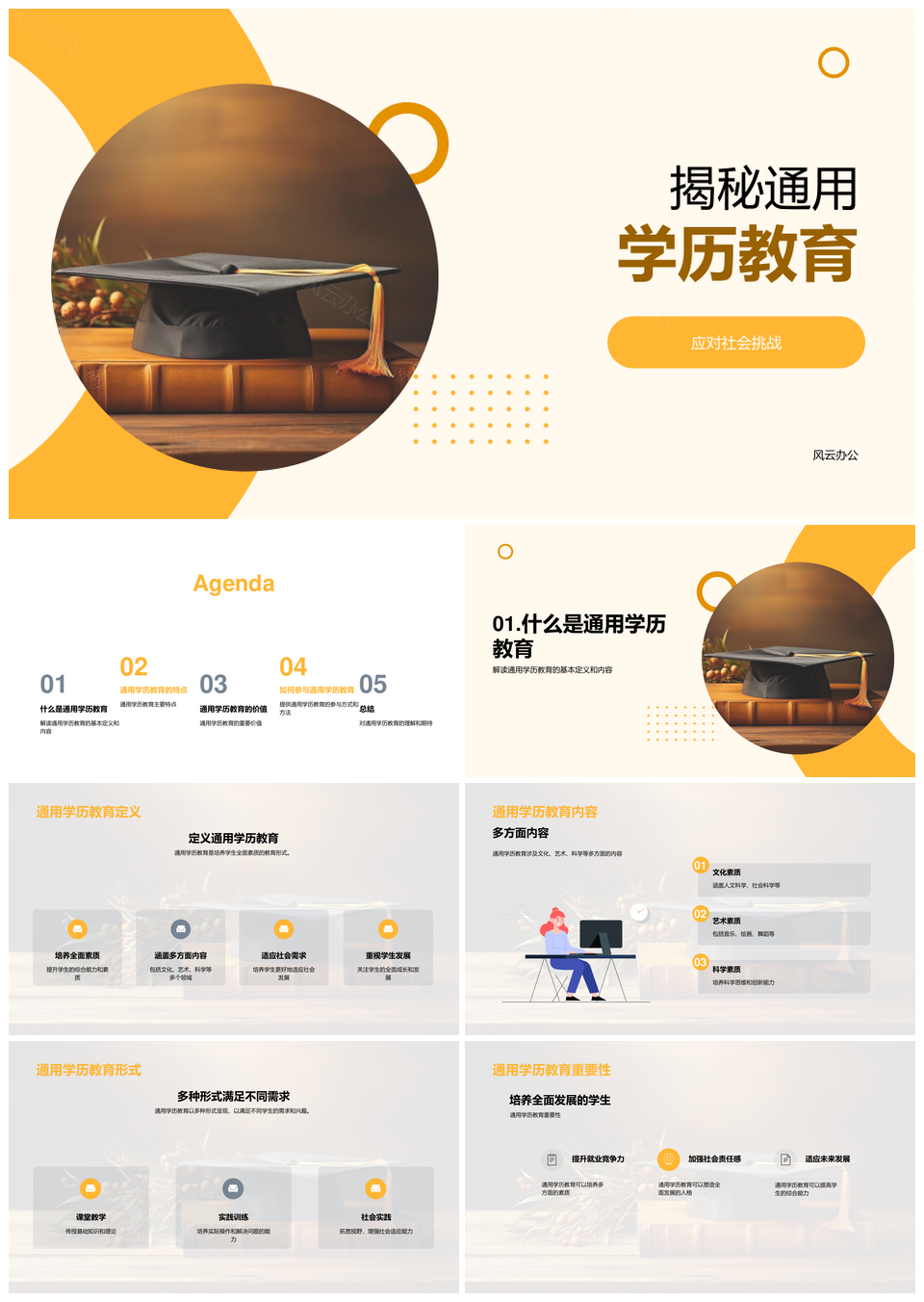 通用学历教育应对社会挑战培育全面素质PPT模板推荐