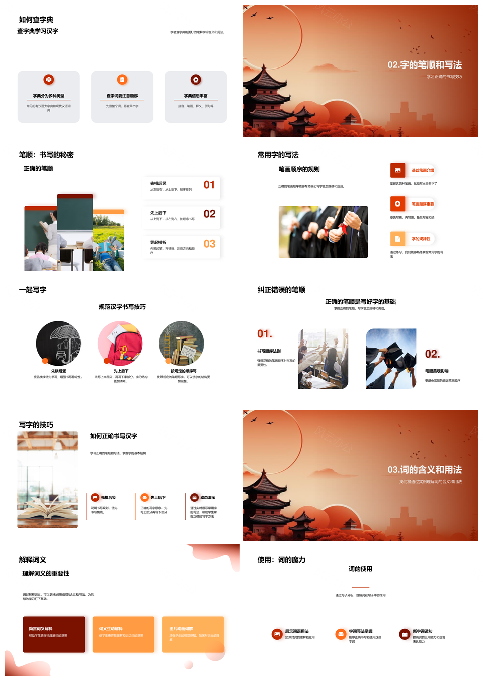 风云办公提供的汉字起源发展部首笔画查字典笔顺写字PPT模板,下载格式为pptx,一共33页,作品中文字及图均可以修改和编辑,图片更改请在作品中右键图片并更换,文字修改请直接点击文字进行修改。
