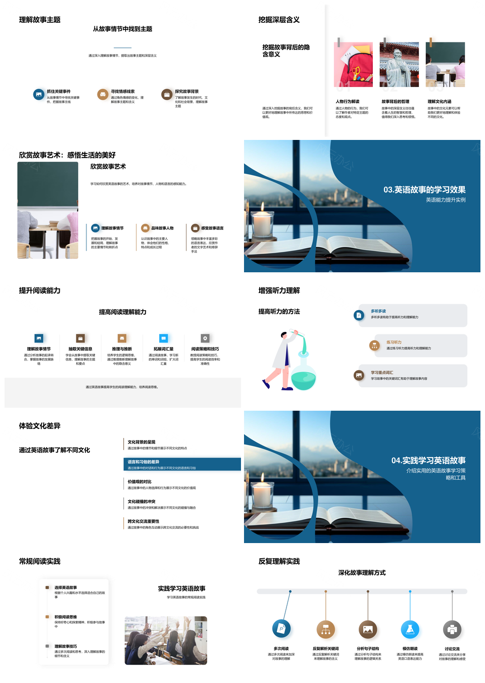 风云办公提供的英语故事探秘语言文化提升理解能力PPT模板,下载格式为pptx,一共23页,作品中文字及图均可以修改和编辑,图片更改请在作品中右键图片并更换,文字修改请直接点击文字进行修改。