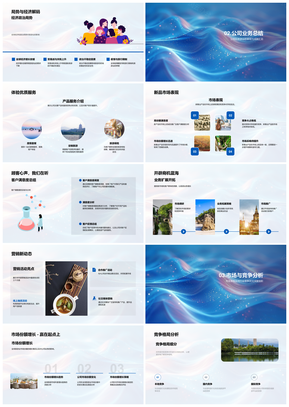 这是一张旅游业年度总结市场业务消费行为新兴目的地产品服务PPT模板,包含旅游业、年度总结、市场、业务、消费行为、新兴、目的地、产品、服务等主题内容,也可用作旅游业年度总结市场业务消费行为、年度总结市场业务消费行为新兴目的地、市场业务消费行为新兴目的地产品服务、消费行为新兴目的地产品服务旅游业、旅游业年度总结新兴目的地产品服务、市场业务新兴目的地产品服务消费行为、旅游业消费行为新兴目的地产品服务、年度总结消费行为新兴目的地旅游业、市场业务消费行为产品服务旅游业、旅游业市场业务消费行为新兴目的地、年度总结市场业务新兴目的地产品服务、消费行为新兴目的地旅游业产品服务、旅游业市场业务新兴目的地产品服务、年度总结市场业务消费行为产品服务、消费行为旅游业新兴目的地产品服务等PPT场景使用。 风云办公提供的旅游业年度总结市场业务消费行为新兴目的地产品服务PPT模板,下载格式为pptx,一共33页,作品中文字及图均可以修改和编辑,图片更改请在作品中右键图片并更换,文字修改请直接点击文字进行修改。