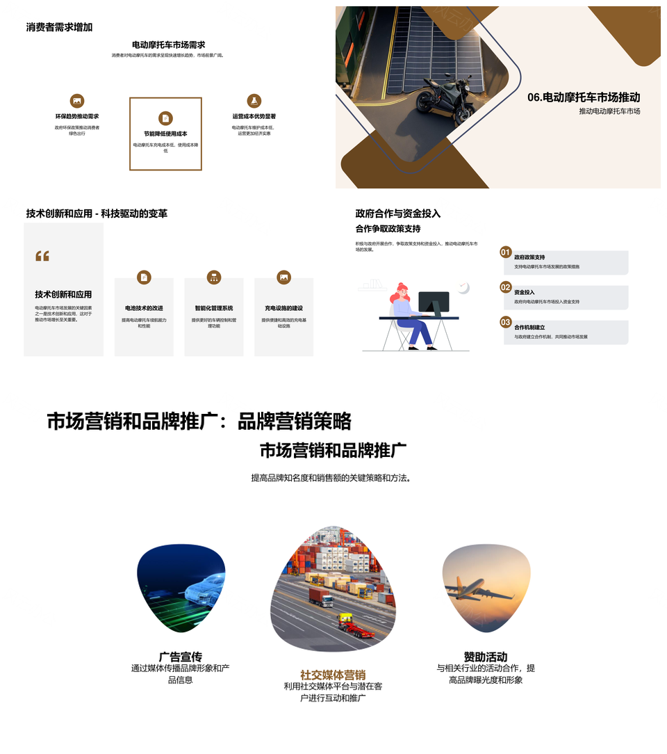 这是一张电动摩托车技术驱动市场规模化增长趋势PPT模板,包含电动摩托车、技术、驱动、市场、规模化、增长、趋势等主题内容,也可用作电动摩托车技术驱动市场、技术驱动市场规模化、驱动市场规模化增长、市场规模化增长趋势、电动摩托车技术驱动、技术驱动市场、驱动市场规模化、市场规模化增长、规模化增长趋势、电动摩托车技术、技术驱动、驱动市场、市场规模化、规模化增长、增长趋势等PPT场景使用。 风云办公提供的电动摩托车技术驱动市场规模化增长趋势PPT模板,下载格式为pptx,一共23页,作品中文字及图均可以修改和编辑,图片更改请在作品中右键图片并更换,文字修改请直接点击文字进行修改。