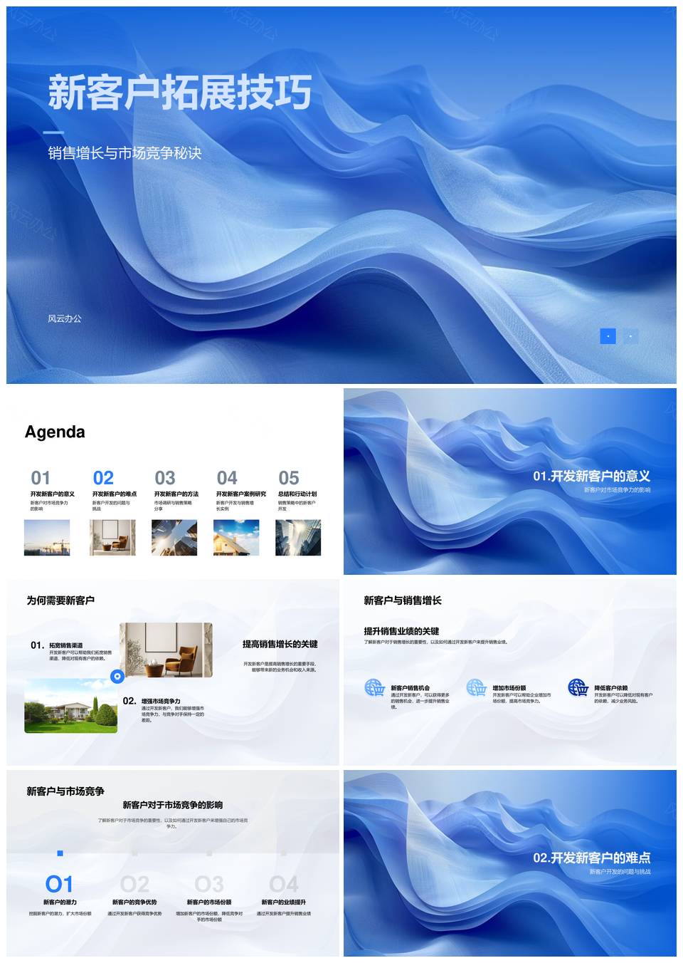 风云办公提供的家居行业新客户拓展与销售渠道开拓PPT模板,下载格式为pptx,一共24页,作品中文字及图均可以修改和编辑,图片更改请在作品中右键图片并更换,文字修改请直接点击文字进行修改。