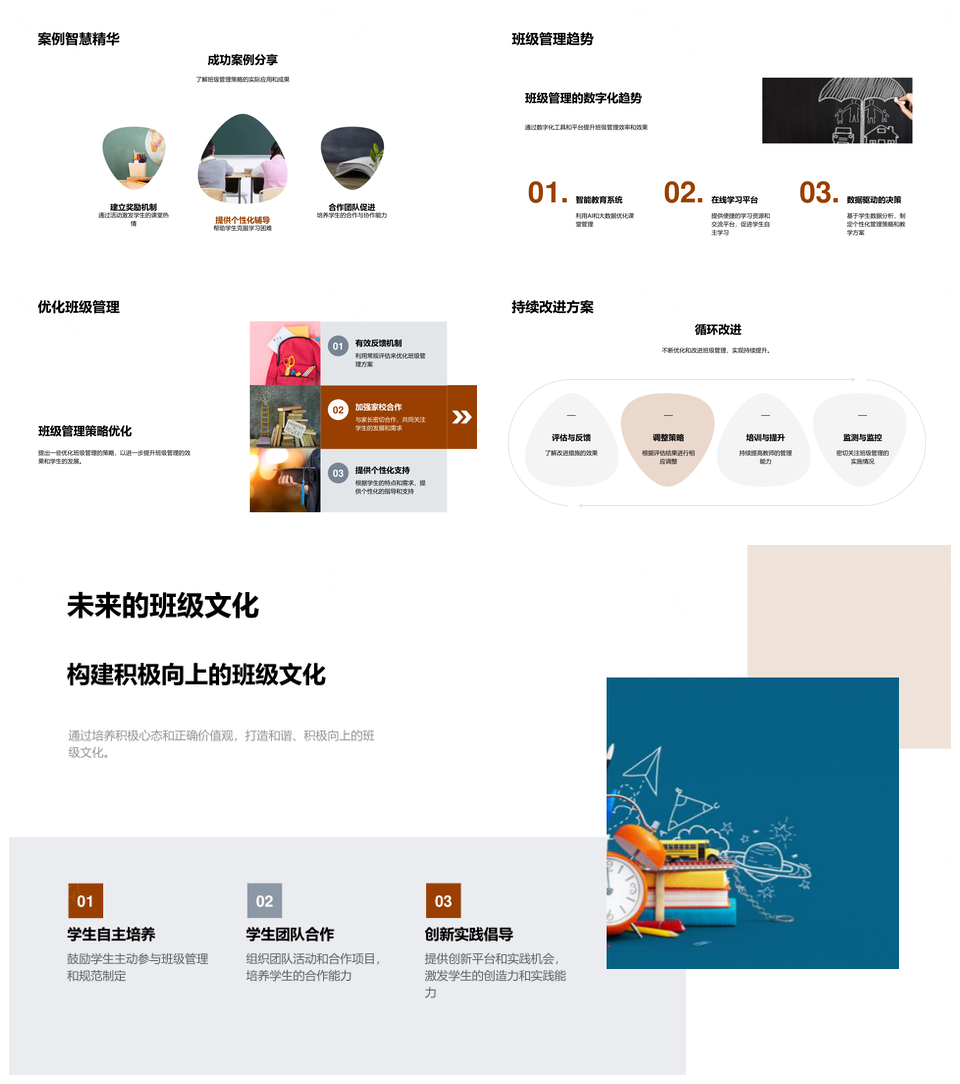 风云办公提供的班级文化管理策略优化学习生活动力PPT模板,下载格式为pptx,一共33页,作品中文字及图均可以修改和编辑,图片更改请在作品中右键图片并更换,文字修改请直接点击文字进行修改。