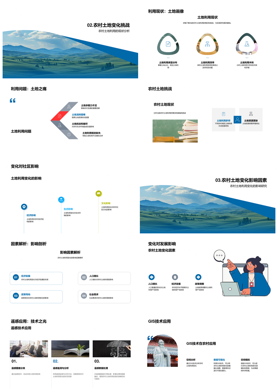 农村土地利用变化遥感GIS技术影响因素分析PPT模板推荐