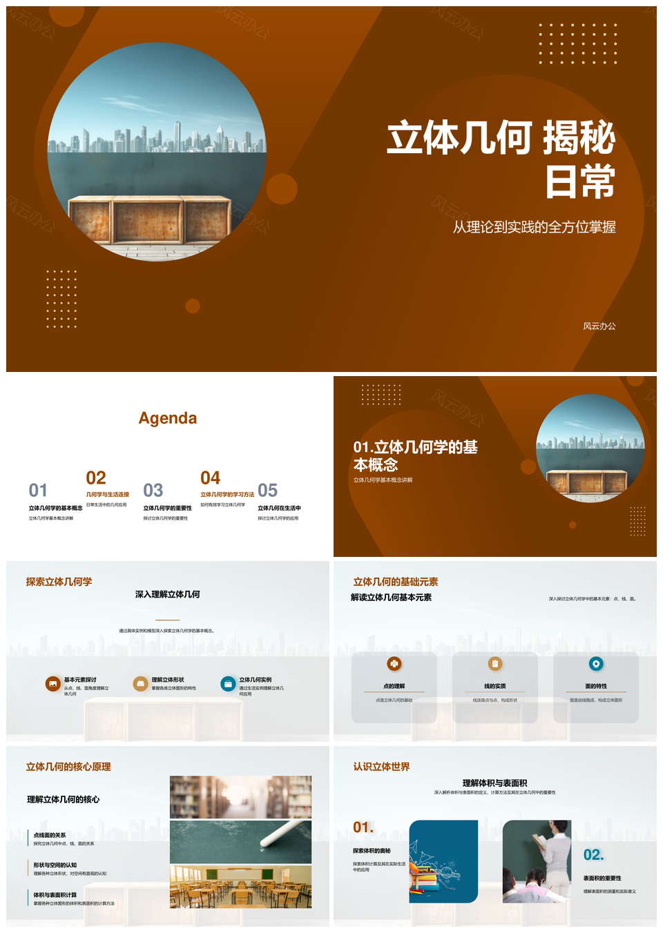 风云办公提供的立体几何理论实践体积表面积探秘PPT模板,下载格式为pptx,一共27页,作品中文字及图均可以修改和编辑,图片更改请在作品中右键图片并更换,文字修改请直接点击文字进行修改。