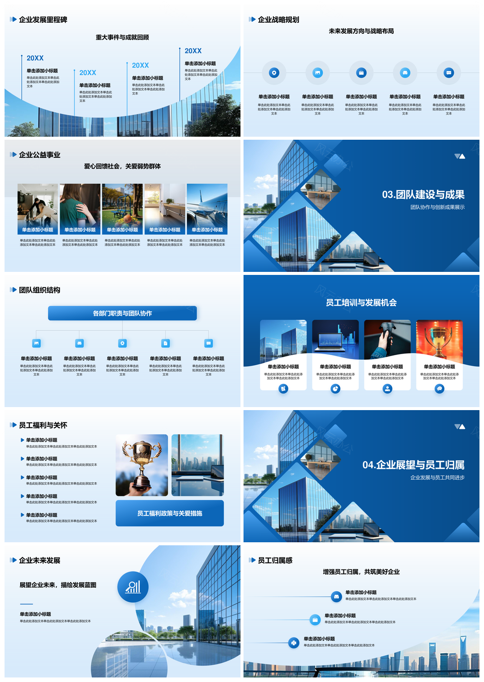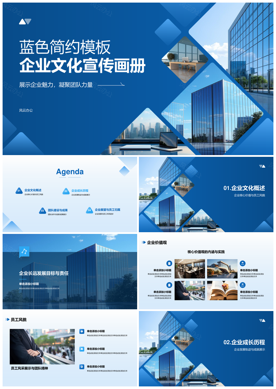 蓝色简约蓝白精品顶尖商务风企业宣传画册系列PPT模板