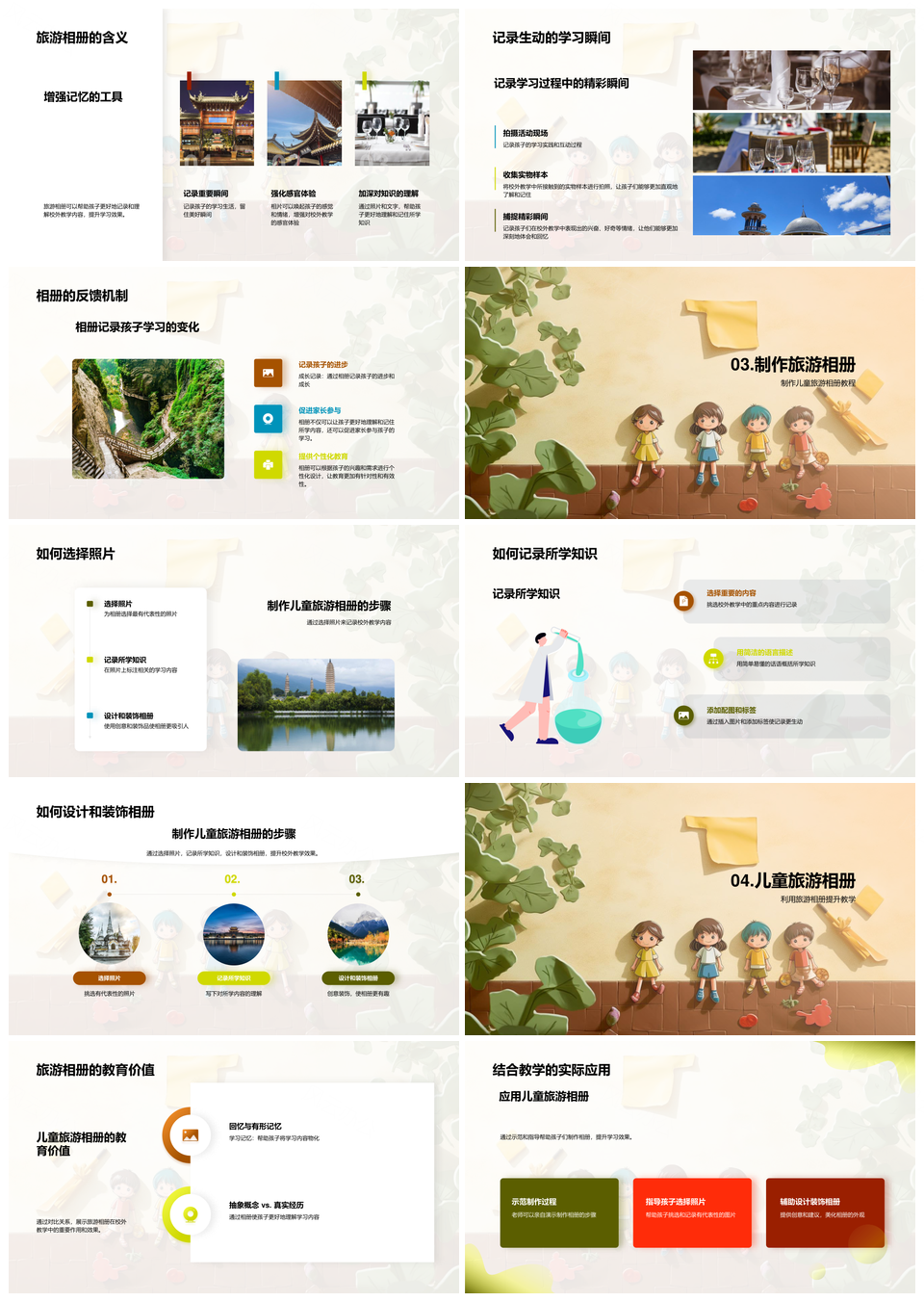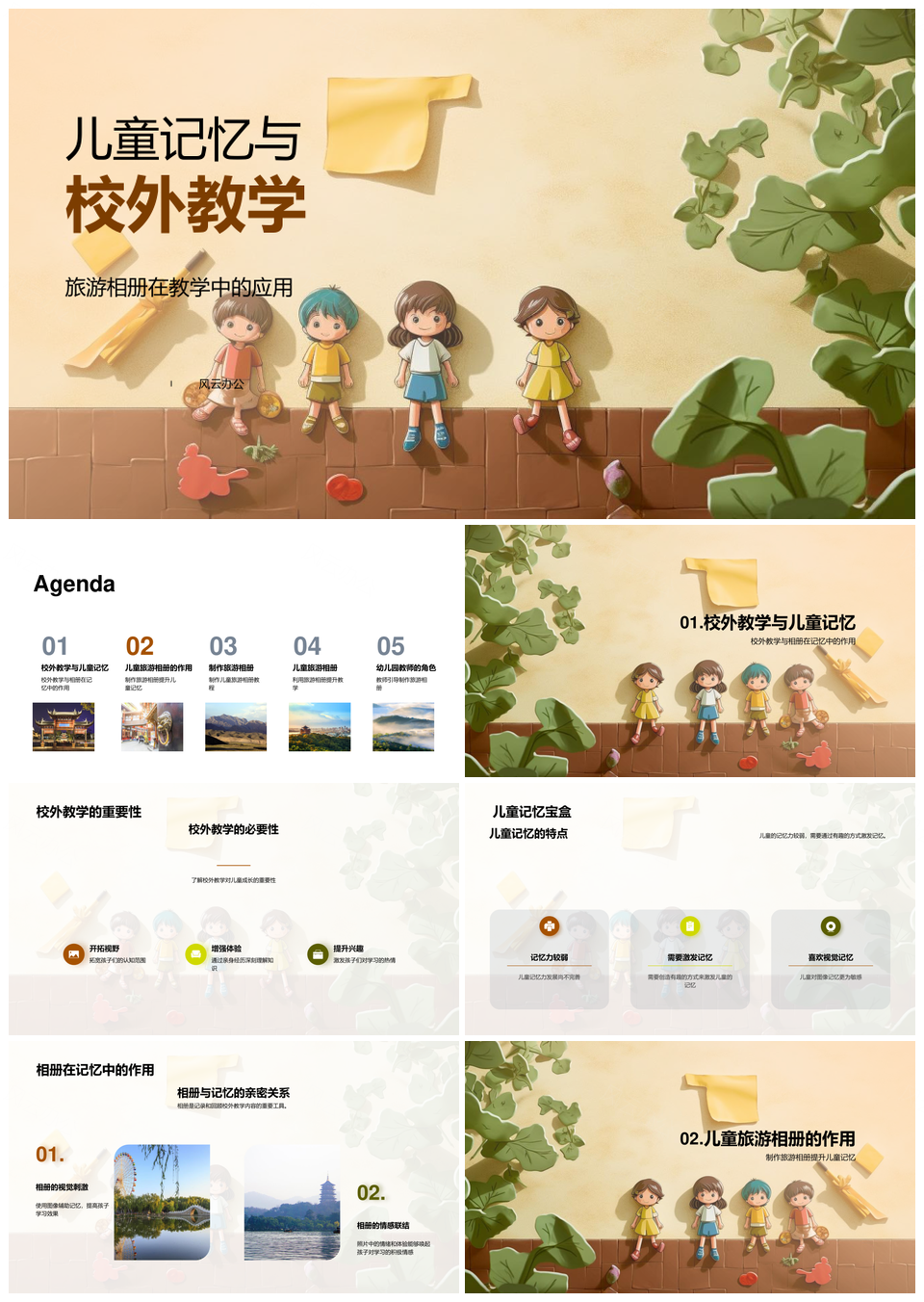 风云办公提供的儿童记忆校外教学旅游相册效果研究PPT模板,下载格式为pptx,一共23页,作品中文字及图均可以修改和编辑,图片更改请在作品中右键图片并更换,文字修改请直接点击文字进行修改。