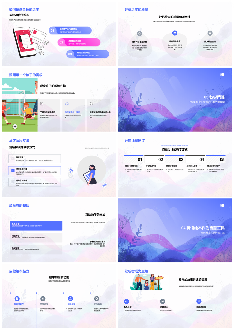幼儿英语绘本互动教学语言启蒙评估故事PPT模板推荐