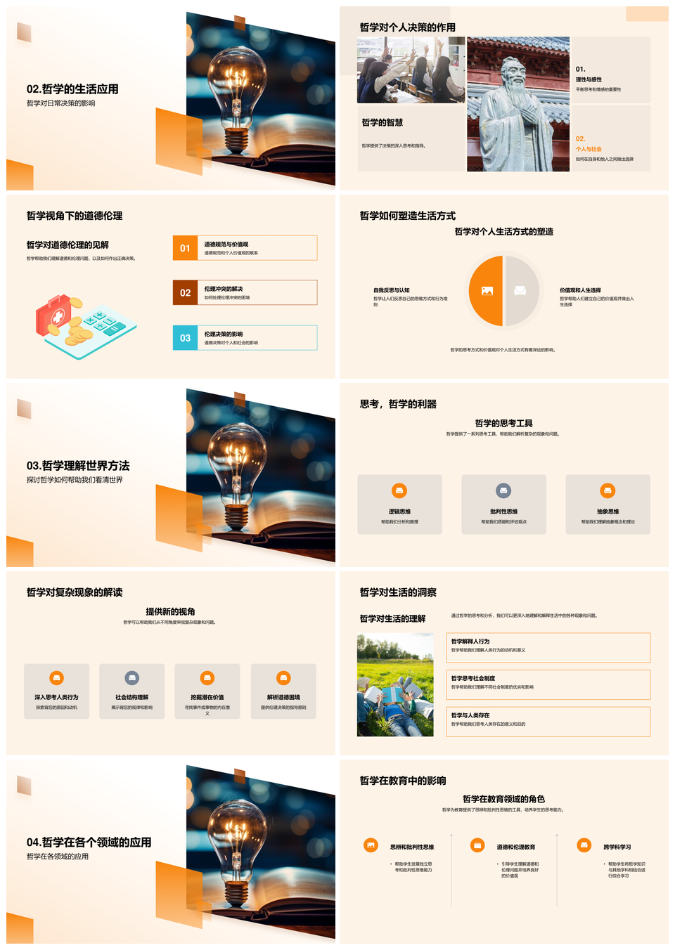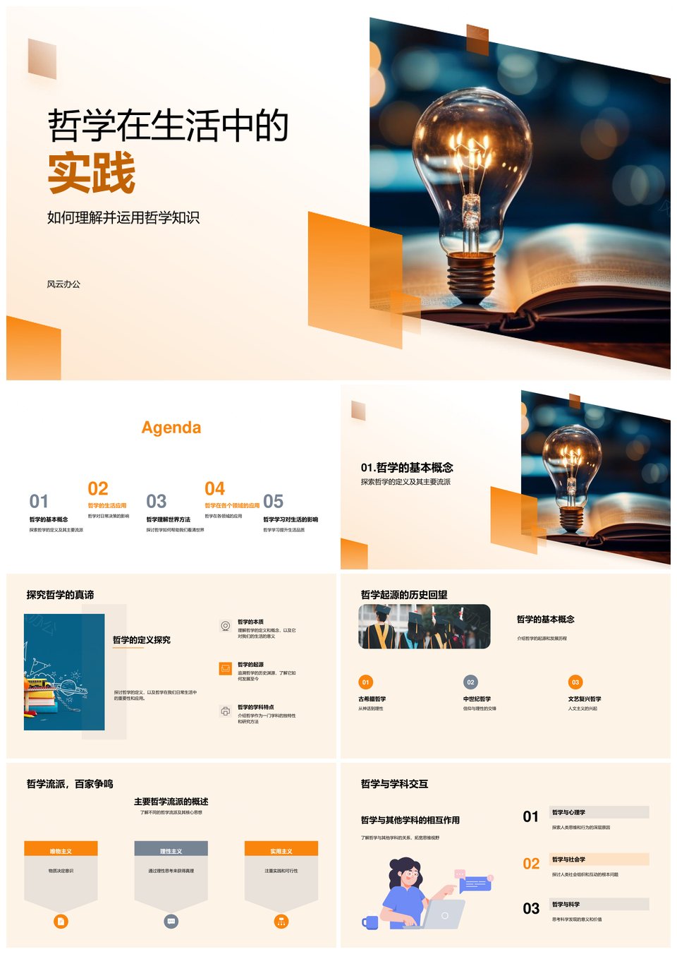 风云办公提供的哲学理解运用于生活讲解答辩决策PPT模板,下载格式为pptx,一共24页,作品中文字及图均可以修改和编辑,图片更改请在作品中右键图片并更换,文字修改请直接点击文字进行修改。