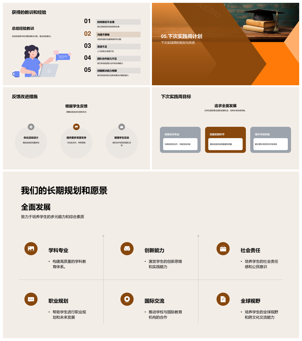 风云办公提供的实践周教育活动助力学生成长展望PPT模板,下载格式为pptx,一共23页,作品中文字及图均可以修改和编辑,图片更改请在作品中右键图片并更换,文字修改请直接点击文字进行修改。