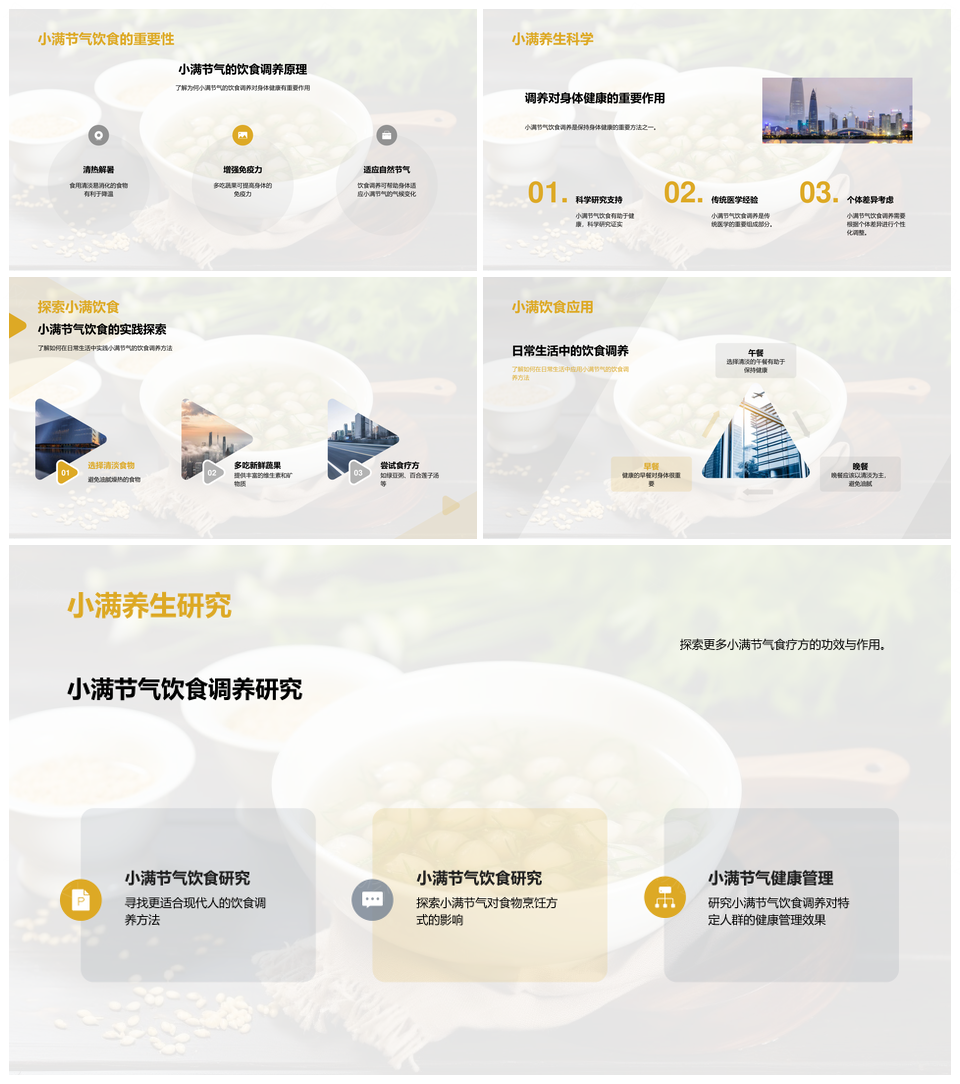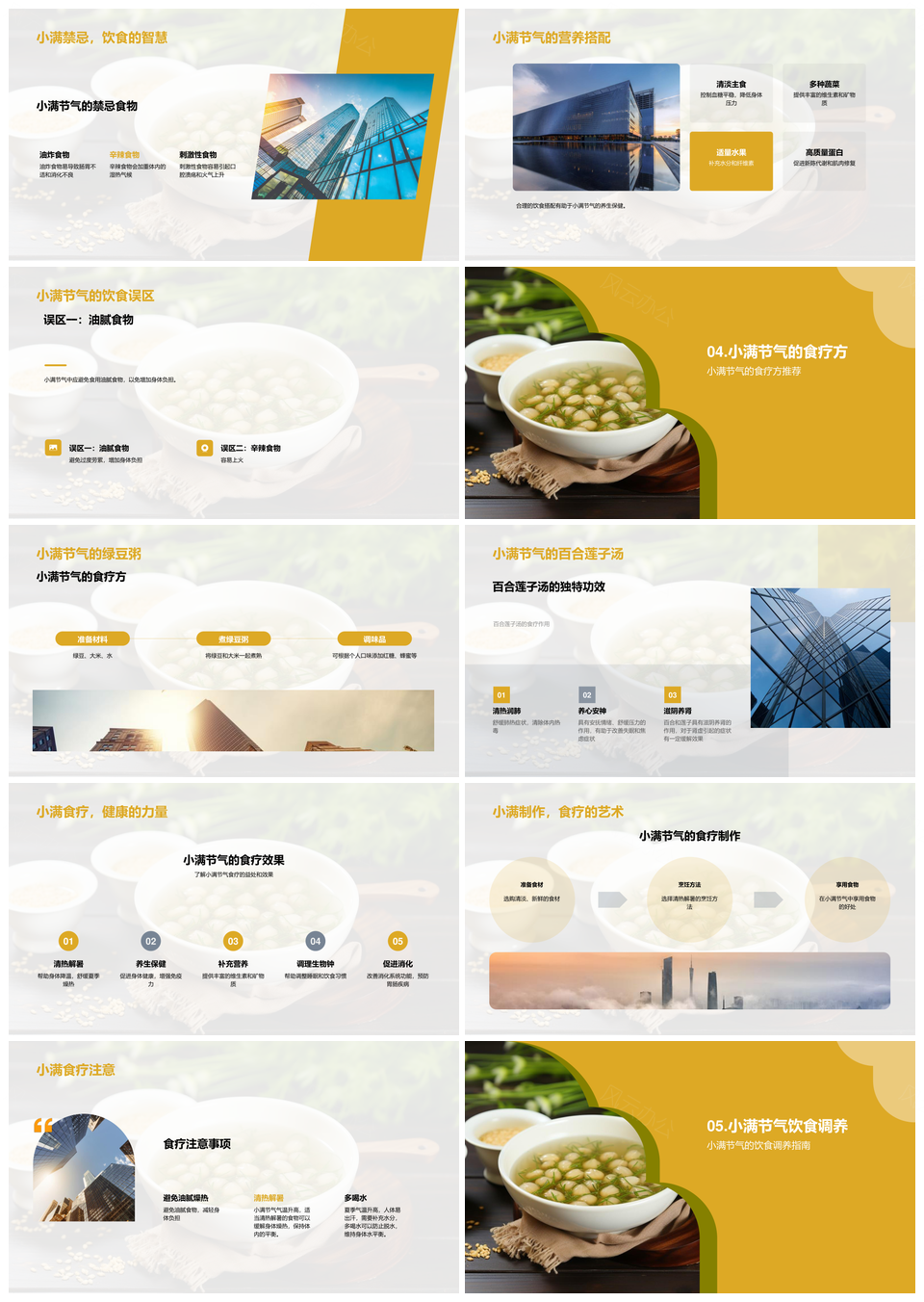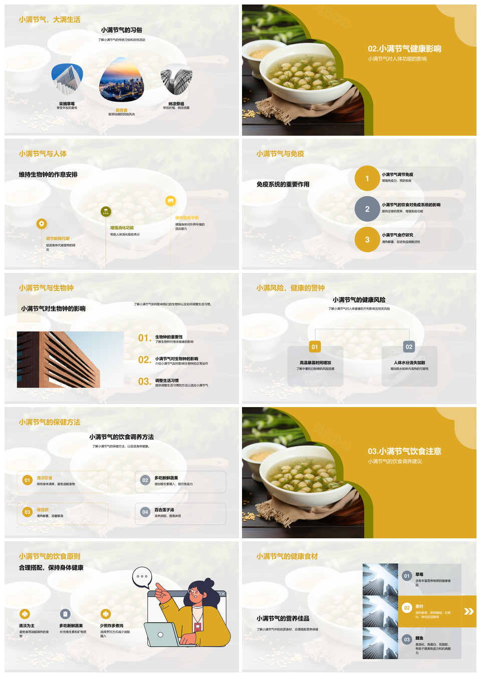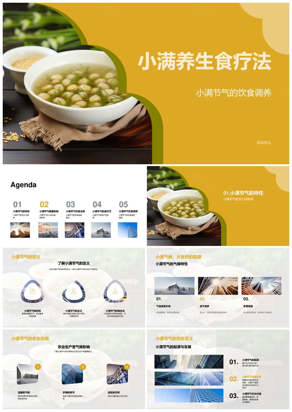 风云办公提供的小满食疗调气候强免疫护生物钟绿豆粥PPT模板,下载格式为pptx,一共33页,作品中文字及图均可以修改和编辑,图片更改请在作品中右键图片并更换,文字修改请直接点击文字进行修改。
