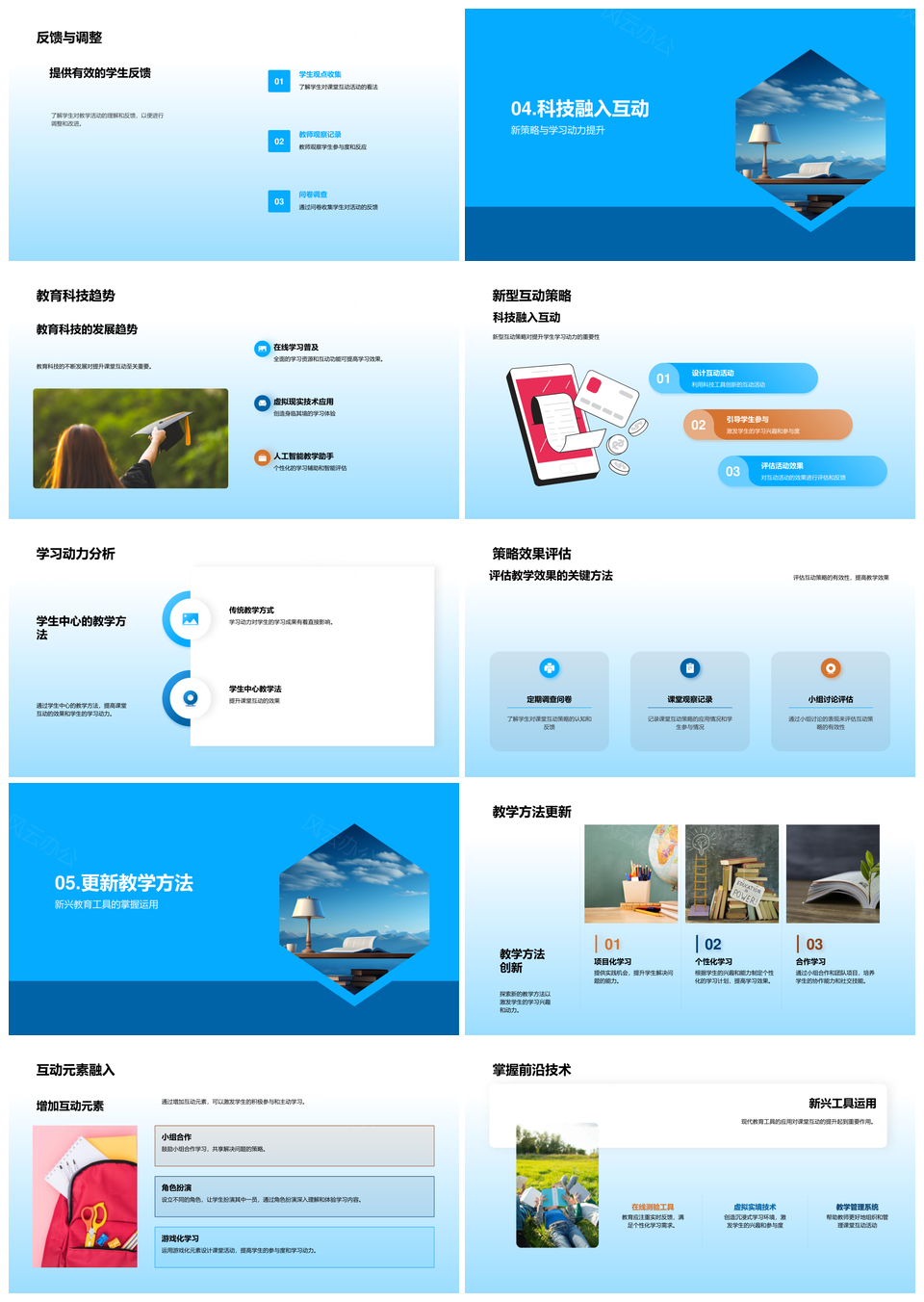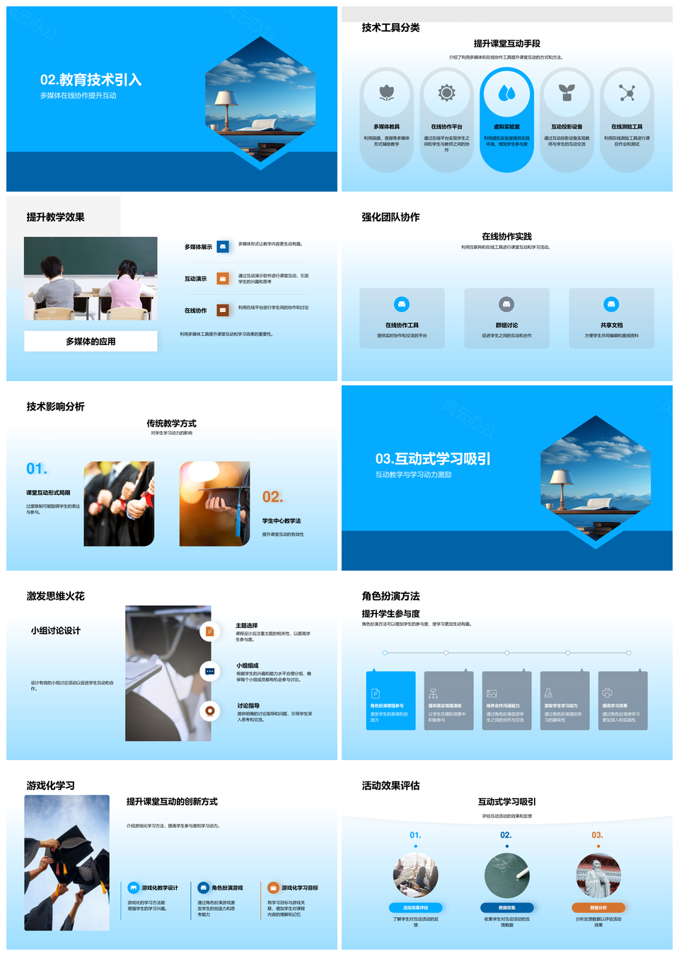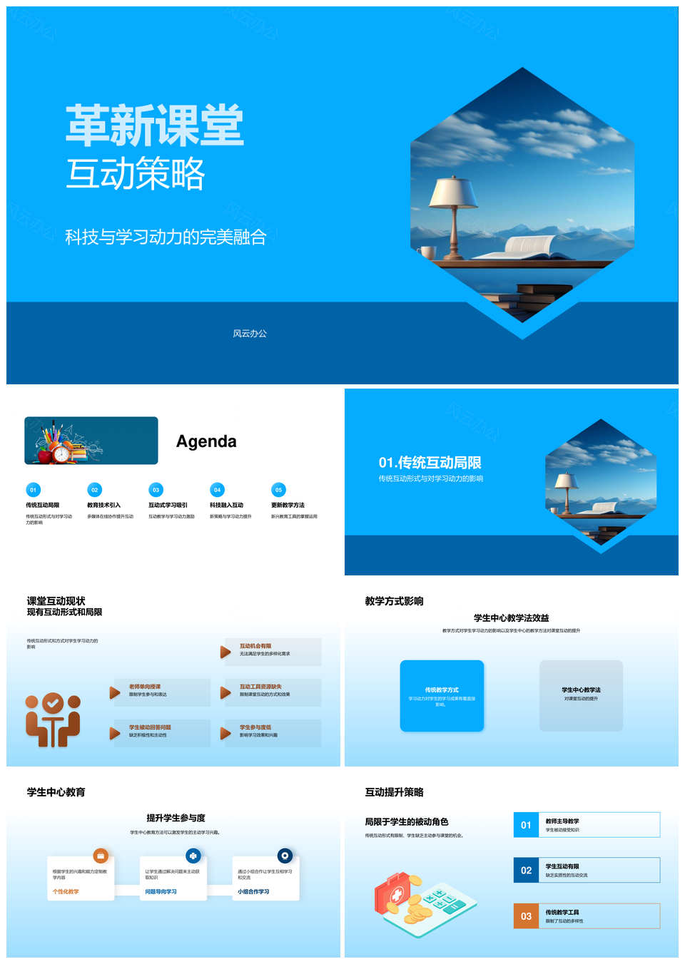 风云办公提供的教育技术赋能学生中心互动课堂策略PPT模板,下载格式为pptx,一共29页,作品中文字及图均可以修改和编辑,图片更改请在作品中右键图片并更换,文字修改请直接点击文字进行修改。