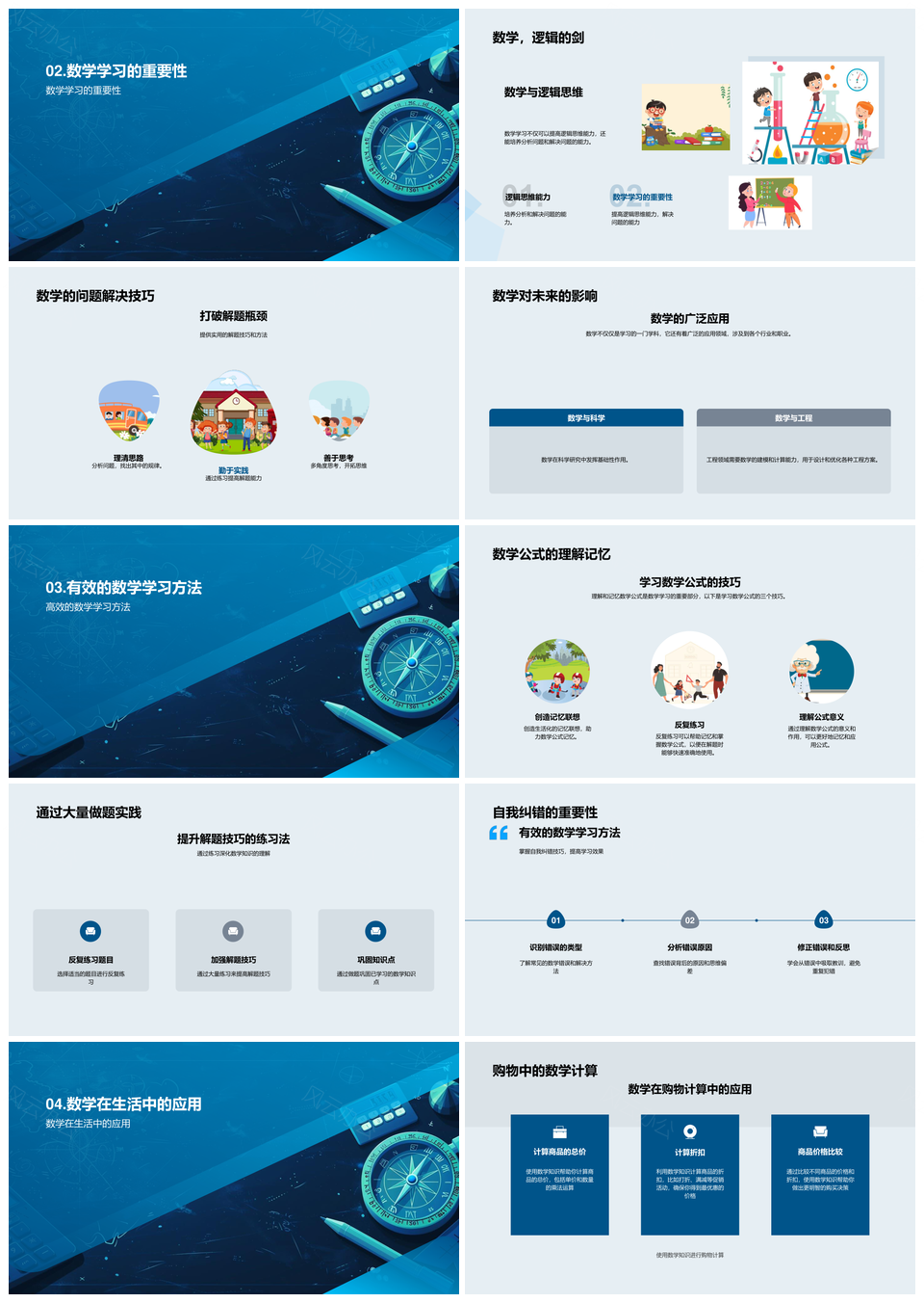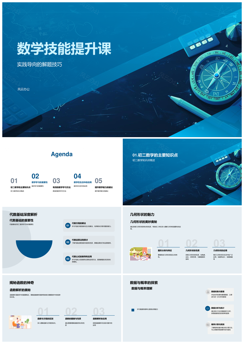 2025初二数学代数几何函数概率思维技巧提升课PPT模板推荐