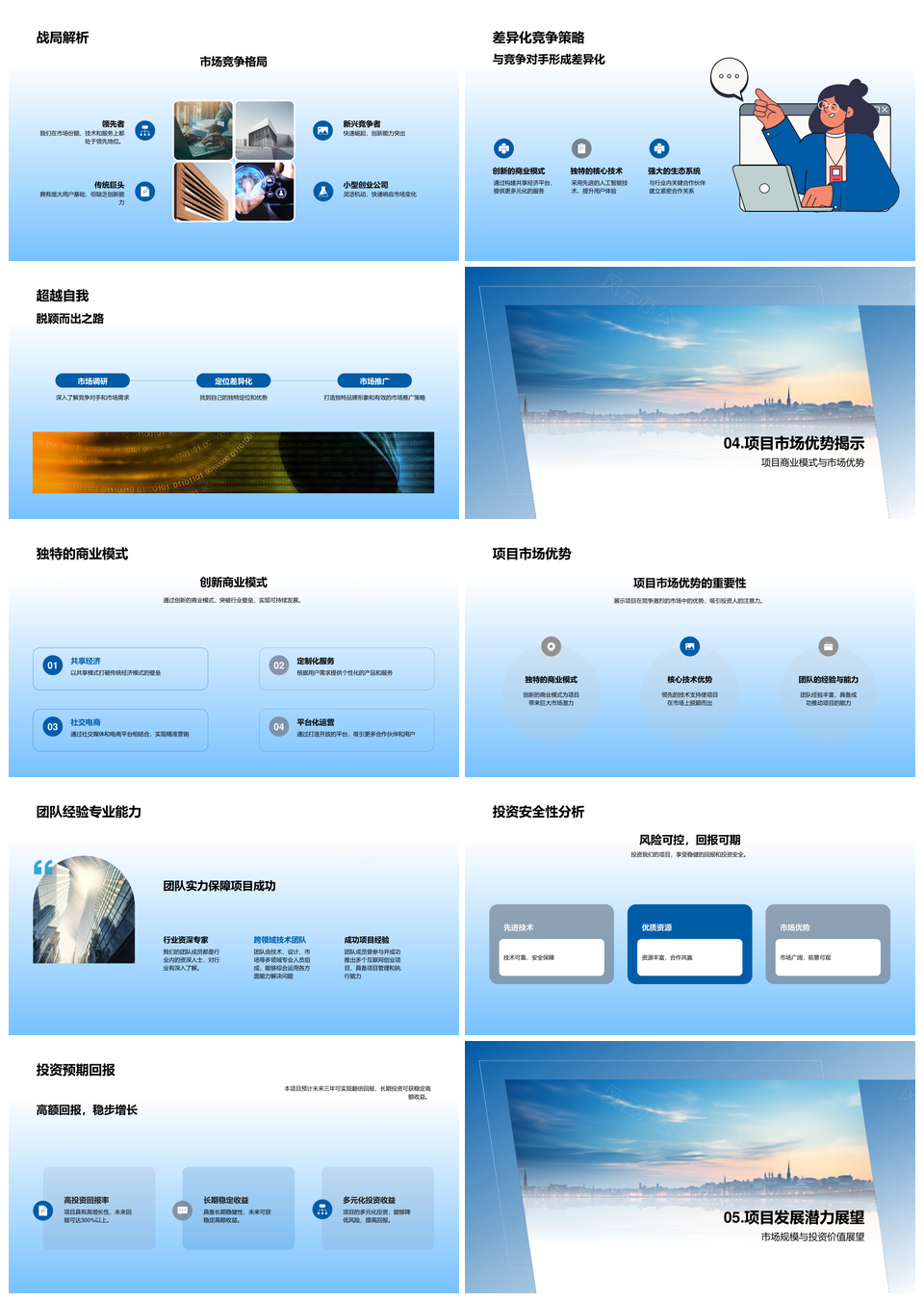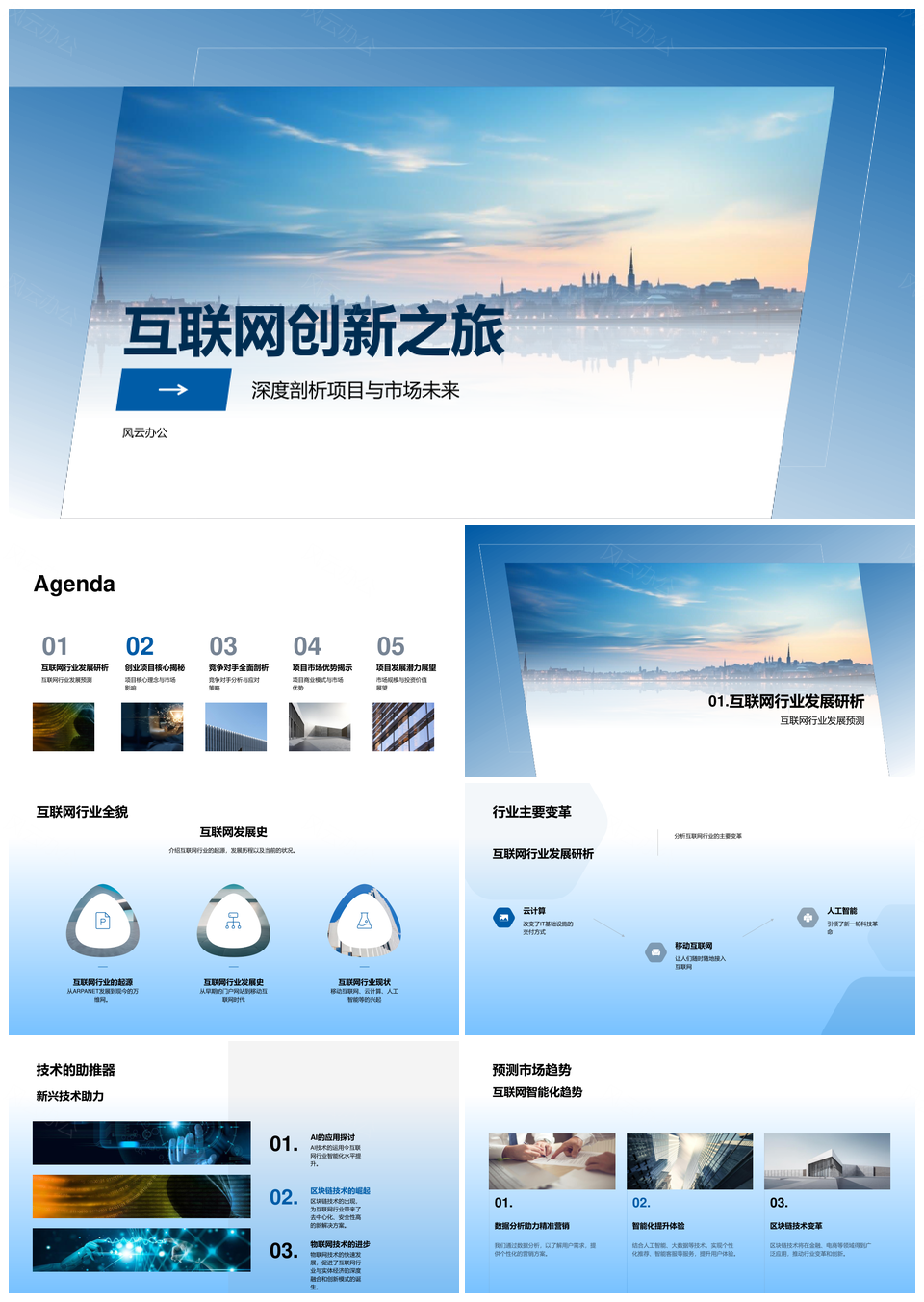 风云办公提供的互联网创新竞逐未来技术市场图景PPT模板,下载格式为pptx,一共33页,作品中文字及图均可以修改和编辑,图片更改请在作品中右键图片并更换,文字修改请直接点击文字进行修改。