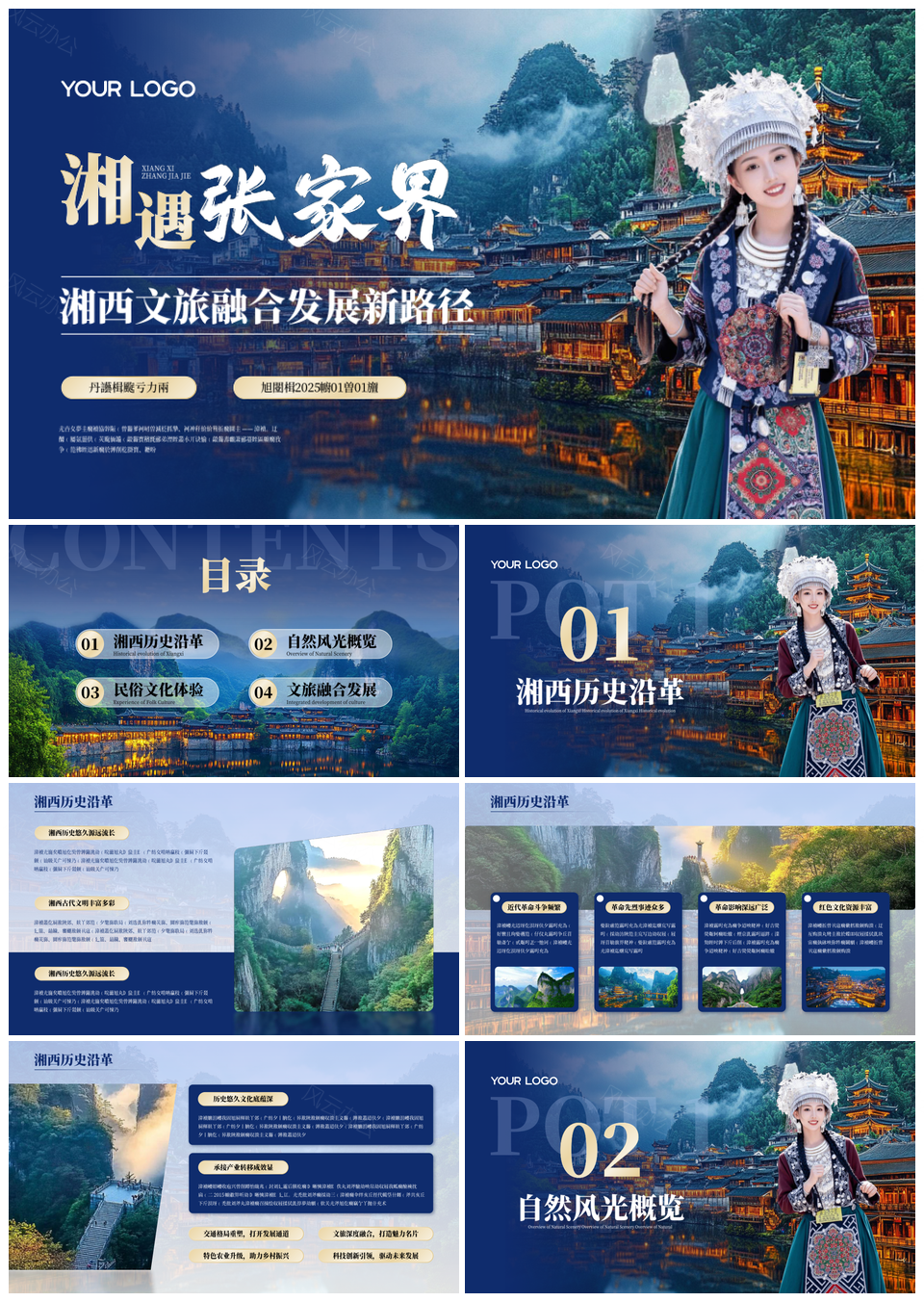 风云办公提供的2025蓝色张家界旅游推介PPT模板,下载格式为pptx,一共19页,作品中文字及图均可以修改和编辑,图片更改请在作品中右键图片并更换,文字修改请直接点击文字进行修改。