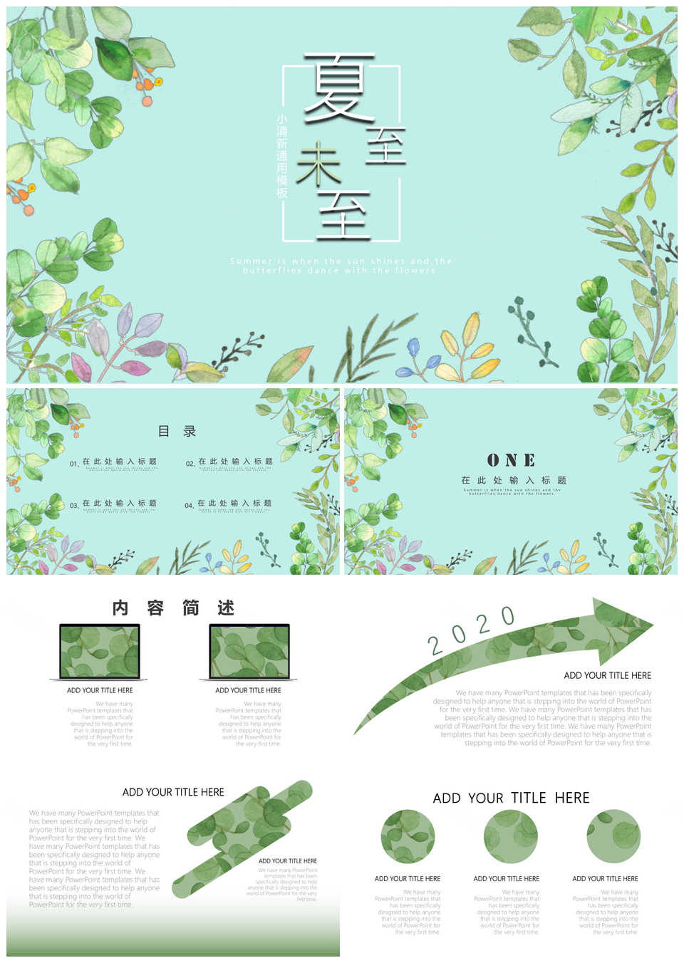 夏至未至绿色树叶文艺小清新PPT模板推荐