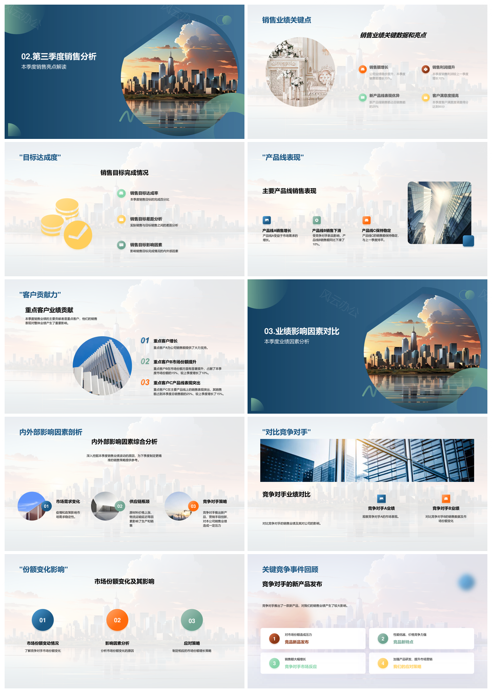 风云办公提供的第三季度销售业绩市场环境竞对分析PPT模板,下载格式为pptx,一共28页,作品中文字及图均可以修改和编辑,图片更改请在作品中右键图片并更换,文字修改请直接点击文字进行修改。