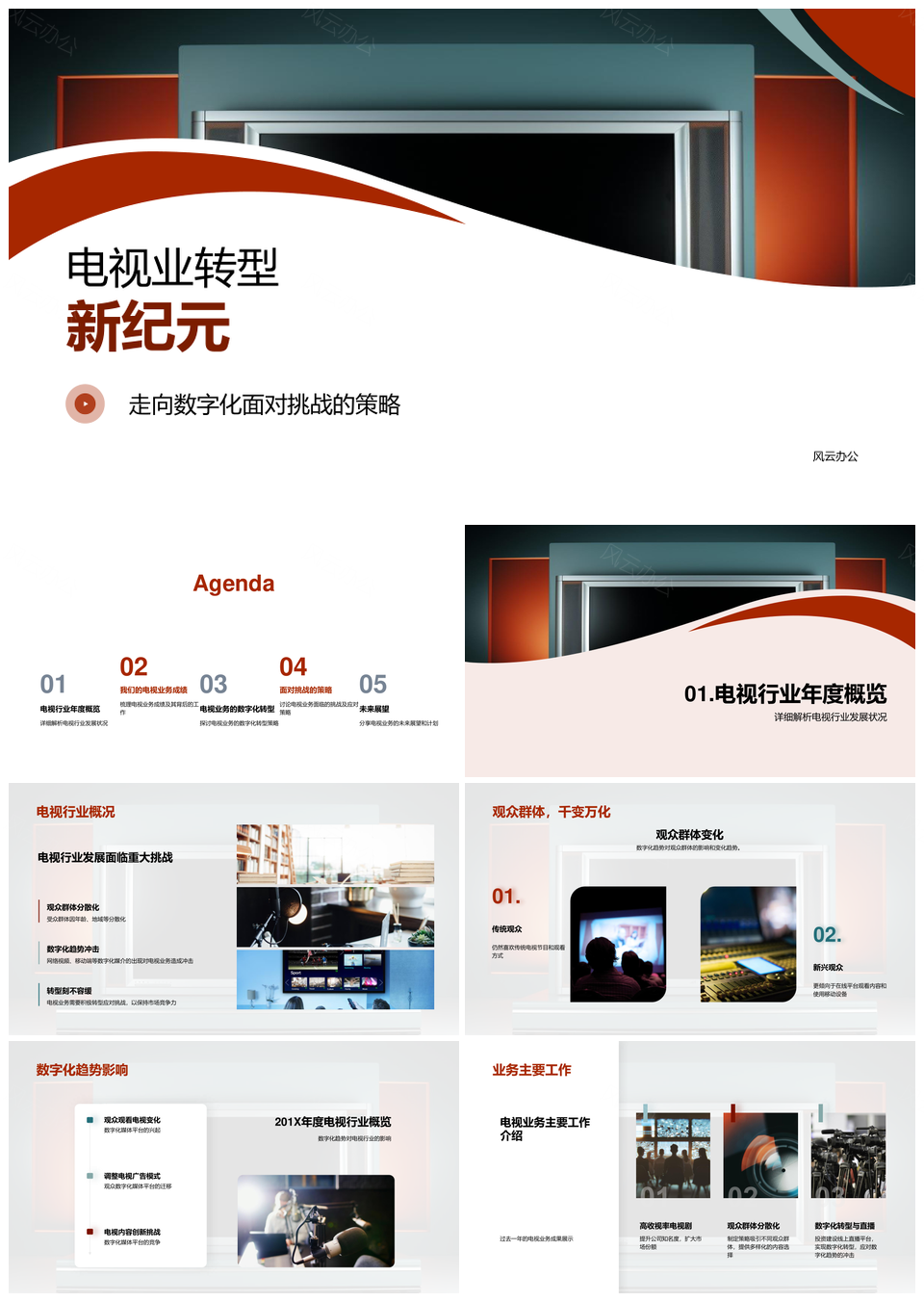 风云办公提供的电视业数字转型新纪元分众直播高收视PPT模板,下载格式为pptx,一共33页,作品中文字及图均可以修改和编辑,图片更改请在作品中右键图片并更换,文字修改请直接点击文字进行修改。