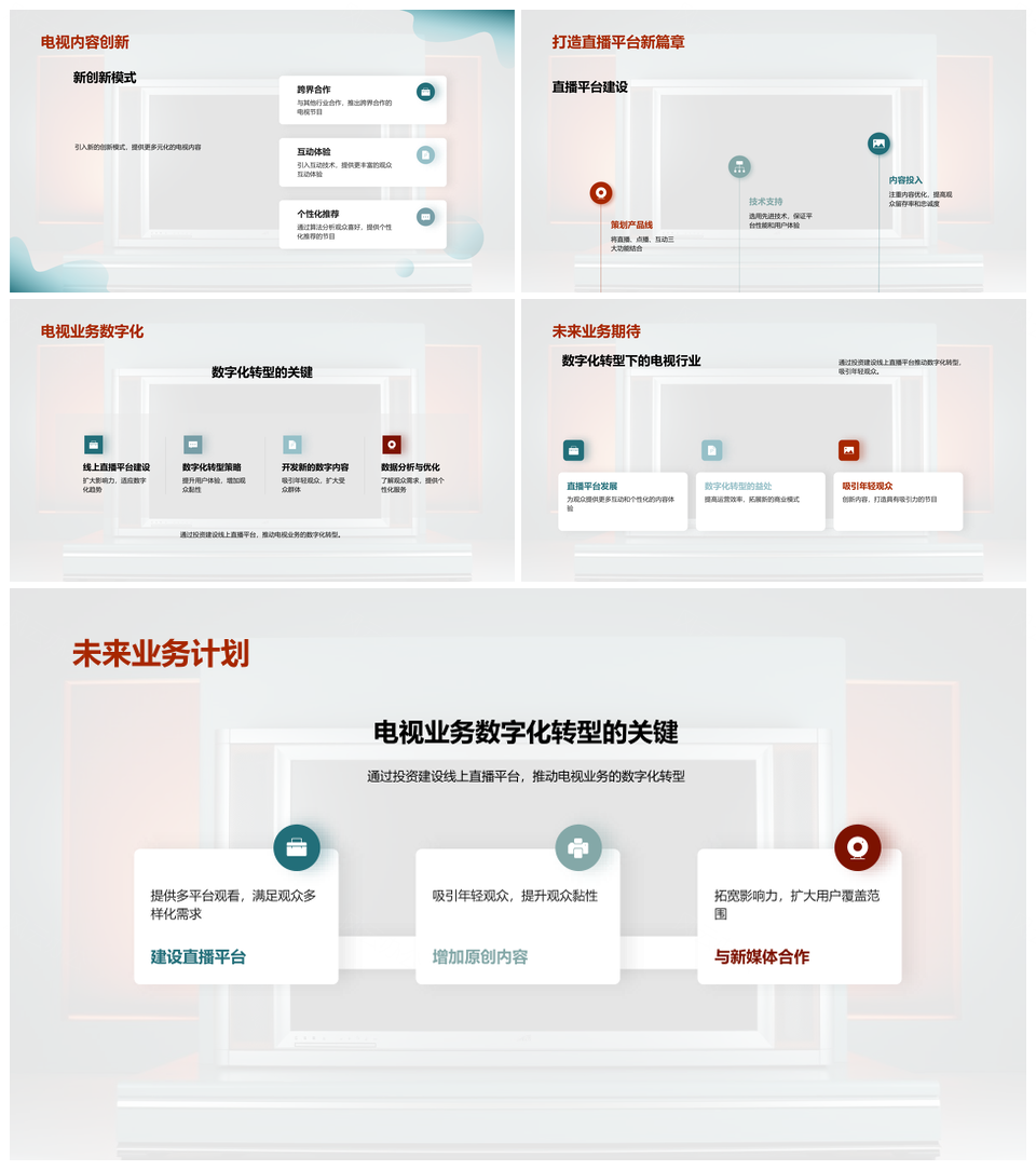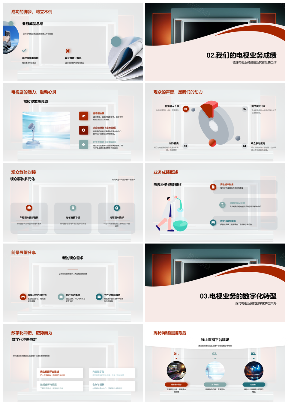 这是一张电视业数字转型新纪元分众直播高收视PPT模板,包含电视业、数字转型、新纪元、分众、直播、高收视等主题内容,也可用作电视业数字转型新纪元分众直播高收视、电视业数字转型新纪元、分众直播高收视新纪元、电视业数字转型、数字转型新纪元、新纪元分众直播、分众直播高收视、直播高收视新纪元、电视业数字、数字转型、转型新纪元、新纪元分众、分众直播、直播高收视、高收视新纪元等PPT场景使用。