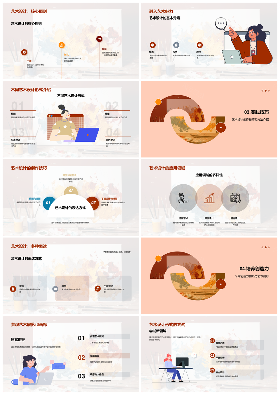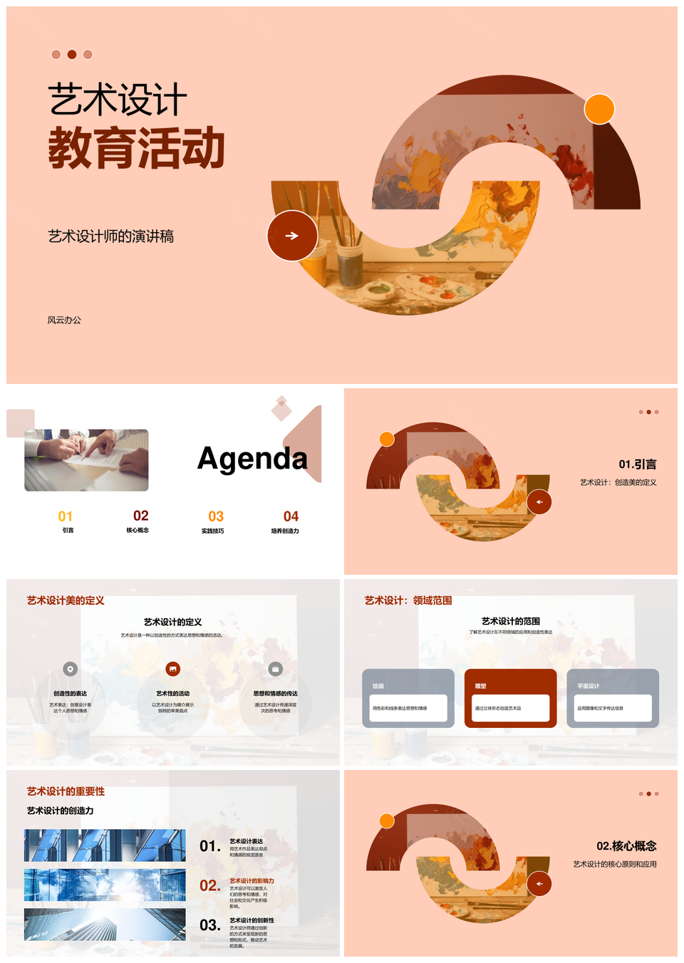 中学艺术设计教育活动核心概念与画笔技巧PPT模板推荐