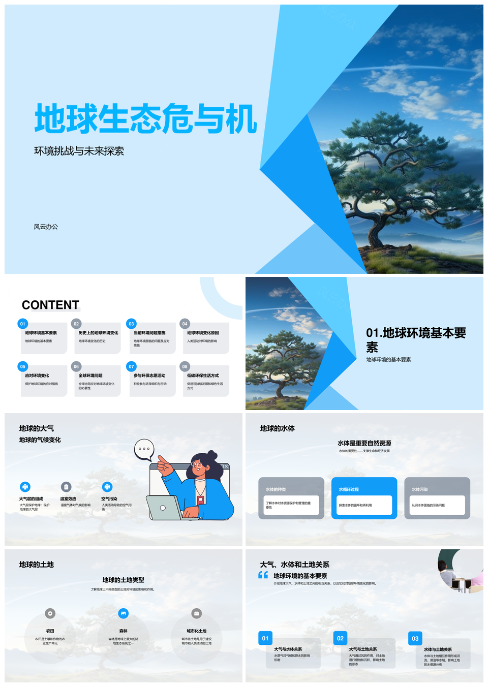 风云办公提供的地球环境演变与人类社会挑战PPT模板,下载格式为pptx,一共35页,作品中文字及图均可以修改和编辑,图片更改请在作品中右键图片并更换,文字修改请直接点击文字进行修改。