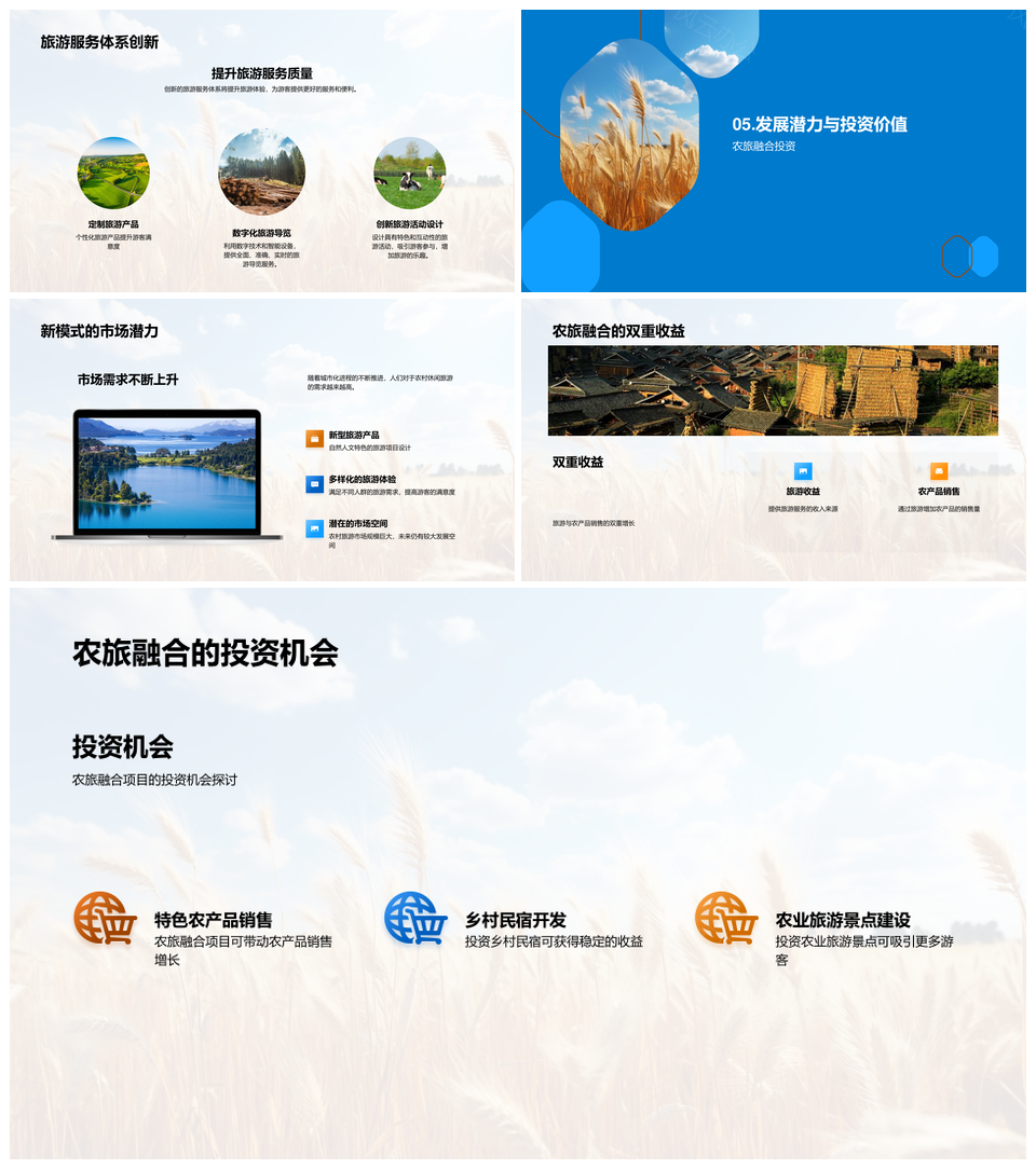 这是一张农旅融合绿野乐园蓝天果园金色稻田PPT模板,包含农旅、融合、绿野乐园、蓝天果园、金色稻田等主题内容,也可用作农旅融合绿野乐园蓝天果园、农旅融合绿野乐园、绿野乐园蓝天果园、蓝天果园金色稻田、农旅融合蓝天果园、农旅融合绿野、绿野乐园蓝天、蓝天果园金色、金色稻田农旅、农旅融合绿野乐园蓝天果园金色稻田、农旅绿野乐园蓝天、融合绿野乐园蓝天、绿野乐园蓝天果园、乐园蓝天果园金色、蓝天果园金色稻田等PPT场景使用。