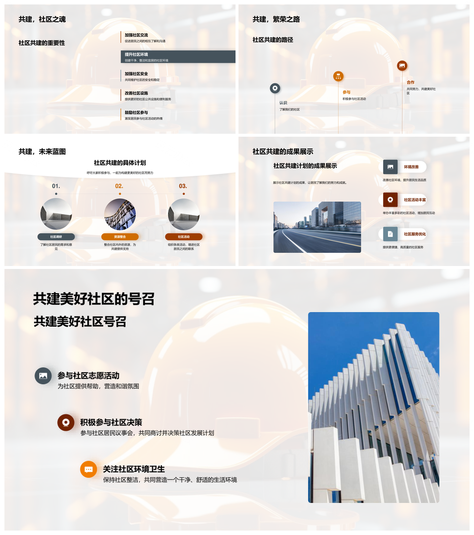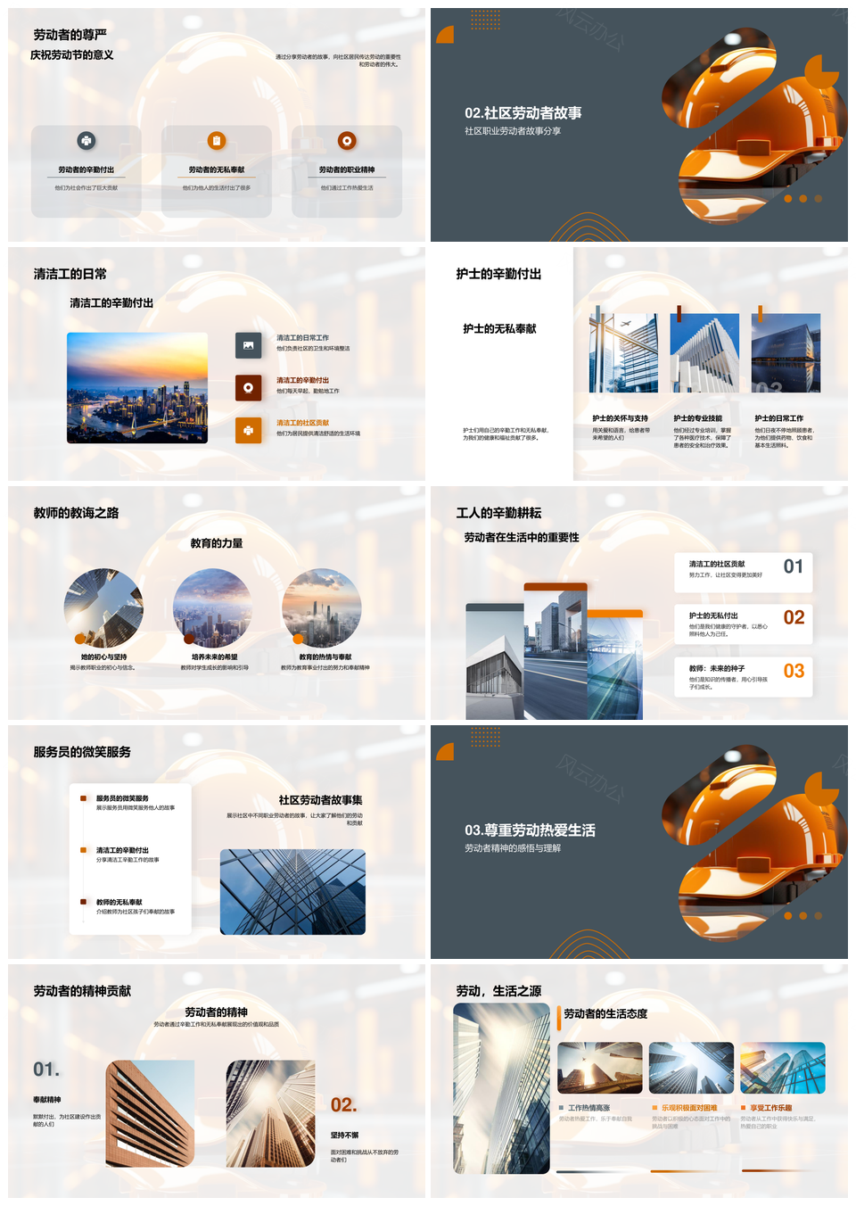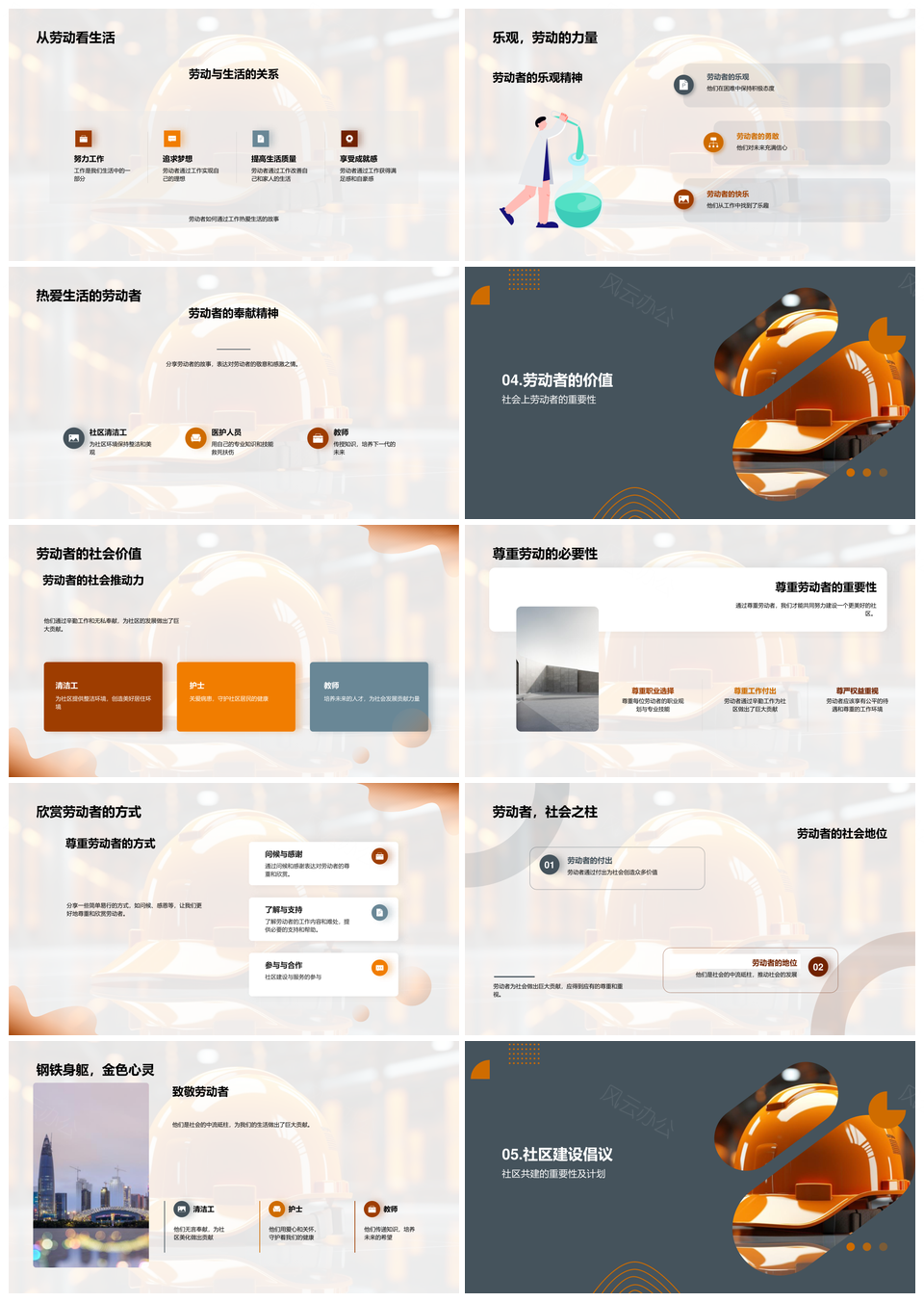 这是一张劳动者力量筑社区美护教建工精神耀社会PPT模板,包含劳动者、力量、筑、社区、美护、教建、工精神、耀、社会等主题内容,也可用作劳动者力量社区美护、力量社区美护建工、社区美护建工精神、美护建工精神社会、劳动者力量社区、力量社区美护、社区美护建工、美护建工精神、建工精神社会、劳动者力量、力量社区、社区美护、美护建工、建工精神、精神社会等PPT场景使用。 风云办公提供的劳动者力量筑社区美护教建工精神耀社会PPT模板,下载格式为pptx,一共33页,作品中文字及图均可以修改和编辑,图片更改请在作品中右键图片并更换,文字修改请直接点击文字进行修改。